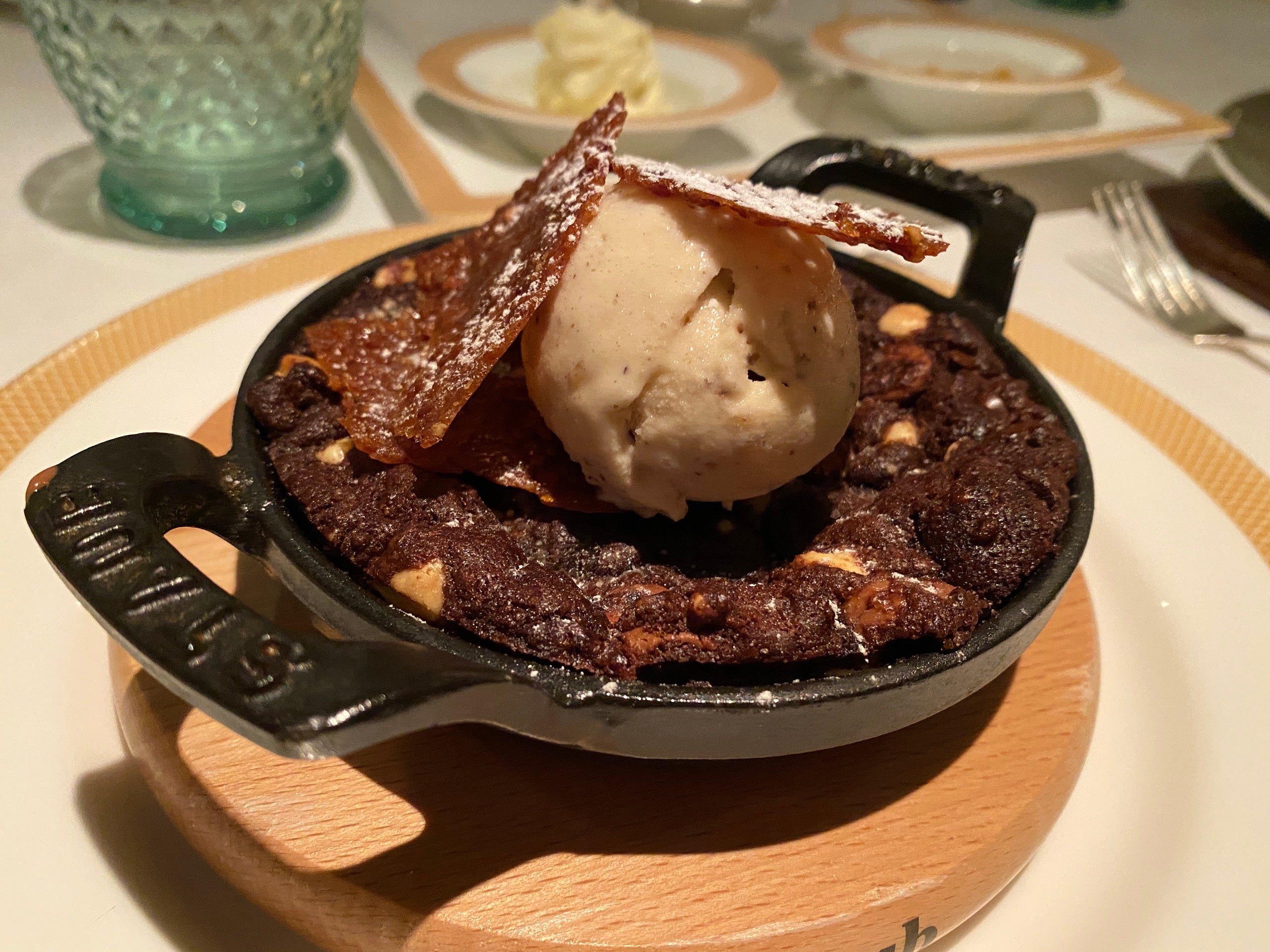 The triple chocolate skillet cookie at the steakhouse on Cunard's Queen Mary 2. (Photo by Ashley Kosciolek/The Points Guy)