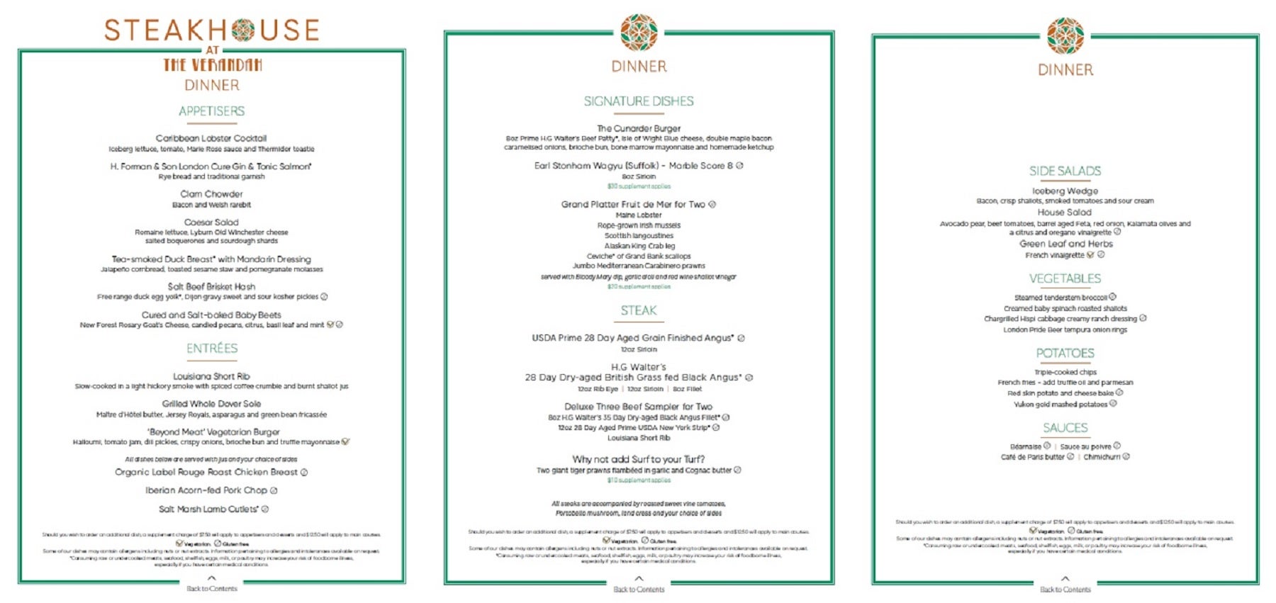 Dinner menu from Steakhouse at The Verandah on Cunard's Queen Mary 2. (Image courtesy of Cunard Line)