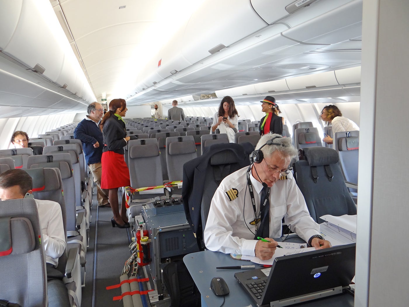 Just 90 minutes after take off from Toulouse (TLS) we landed in Lisbon [LIS]. The Airbus team on board had more work ahead, with the first transatlantic trip to Rio de Janeiro [GIG] scheduled for Wednesday.