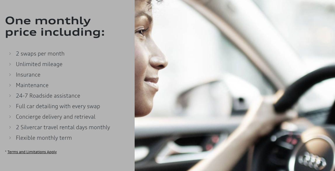 While that's a tidy sum to pay for those vehicles, it becomes somewhat more sensible when you consider the burden that is shifted back to the automaker. In a sense, it splits the difference between a day-to-day rental and a lease, and allows for a lot more flexibility. In summer months, the A5 drop-top would be lovely. During Thanksgiving, swapping out for a Q7 to shuttle the grandparents around would make a lot of sense.