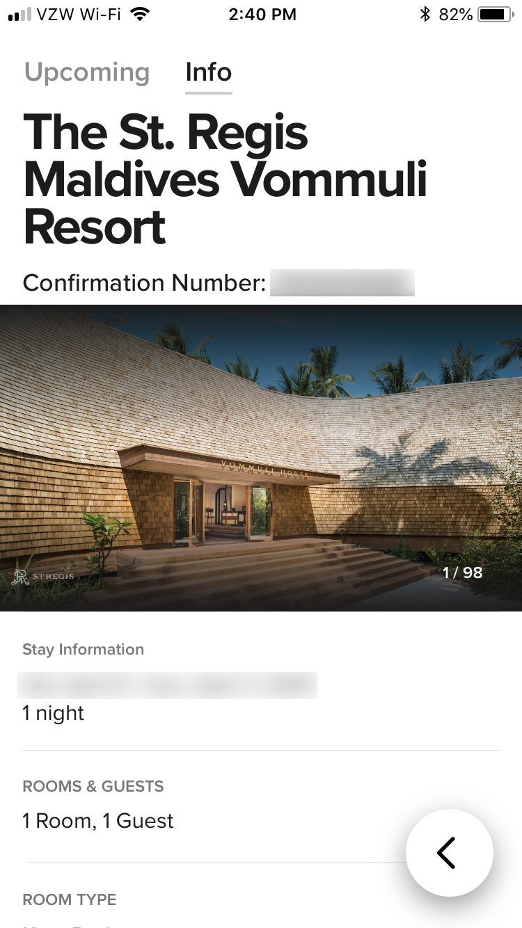 For example, I was just able to confirm a one-night stay in a Garden Villa at the St. Regis Maldives:
