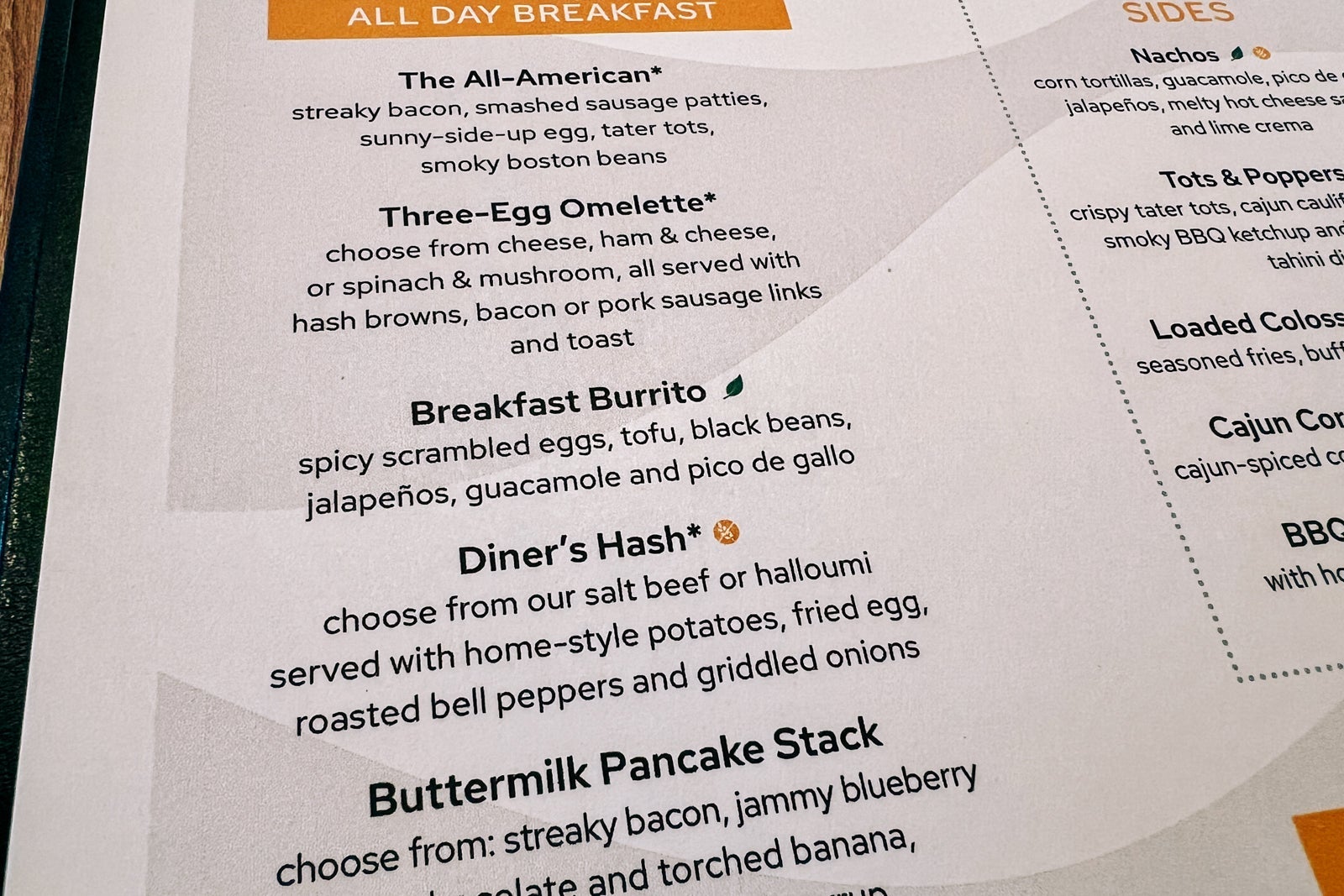 Renamed Americana by the line, this top floor of the main dining room also offers a solid array of dinerlike breakfast dishes, including made-to-order omelets, a breakfast burrito and a "diner's hash" made with salt beef or halloumi served with home-style potatoes, fried eggs, roasted bell peppers and griddled onions.