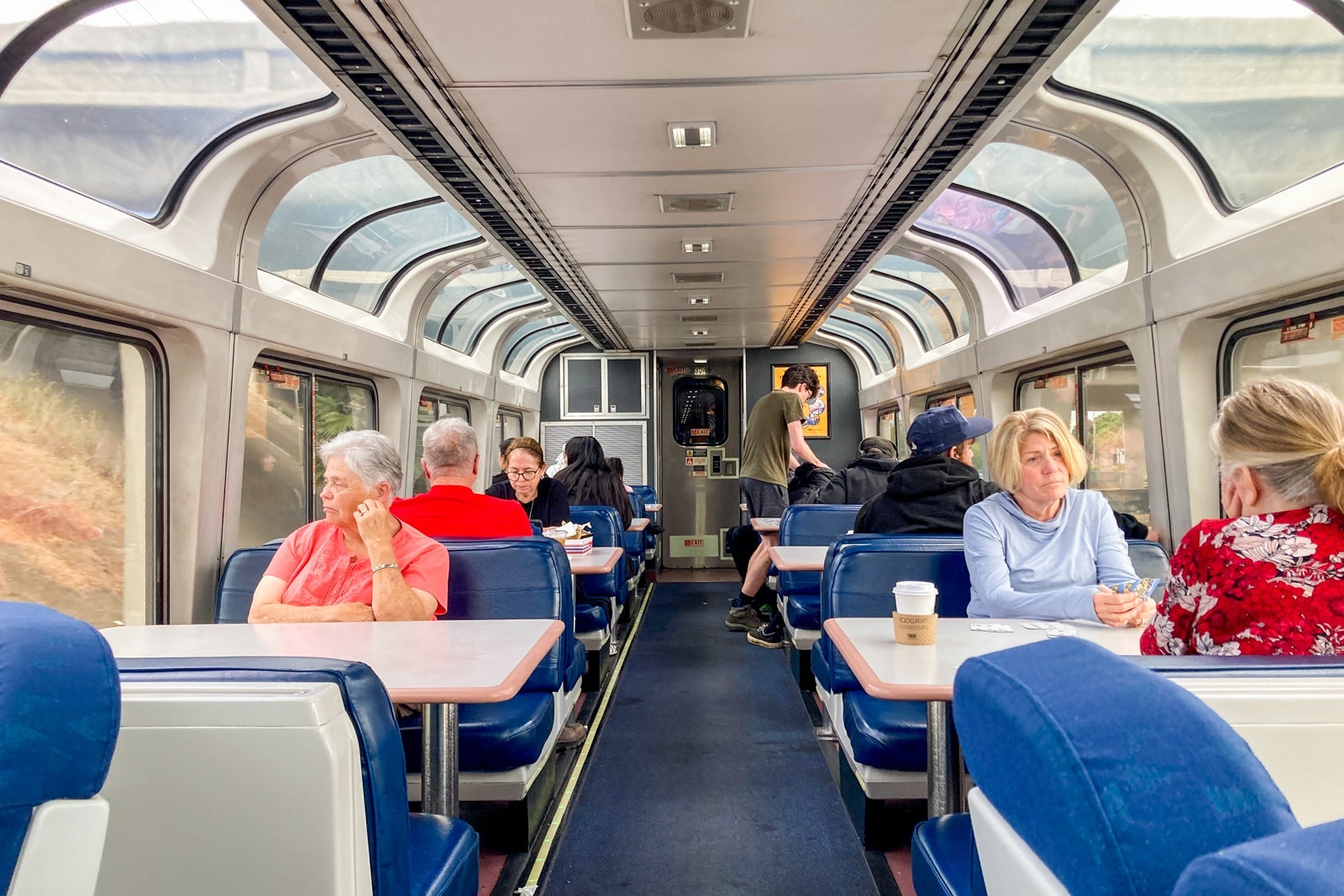 Admittedly, this is a 14-hour ride, but paying just $61 for my economy ticket gave me the chance to experience a long-distance train for the first time in over seven years. Some people don't enjoy trains, but I love them. I relish being able to move around and have more space than you experience on a plane. The lounge and dining cars allow you to eat at a real table with panoramic views rather than the tray table at your plane seat.