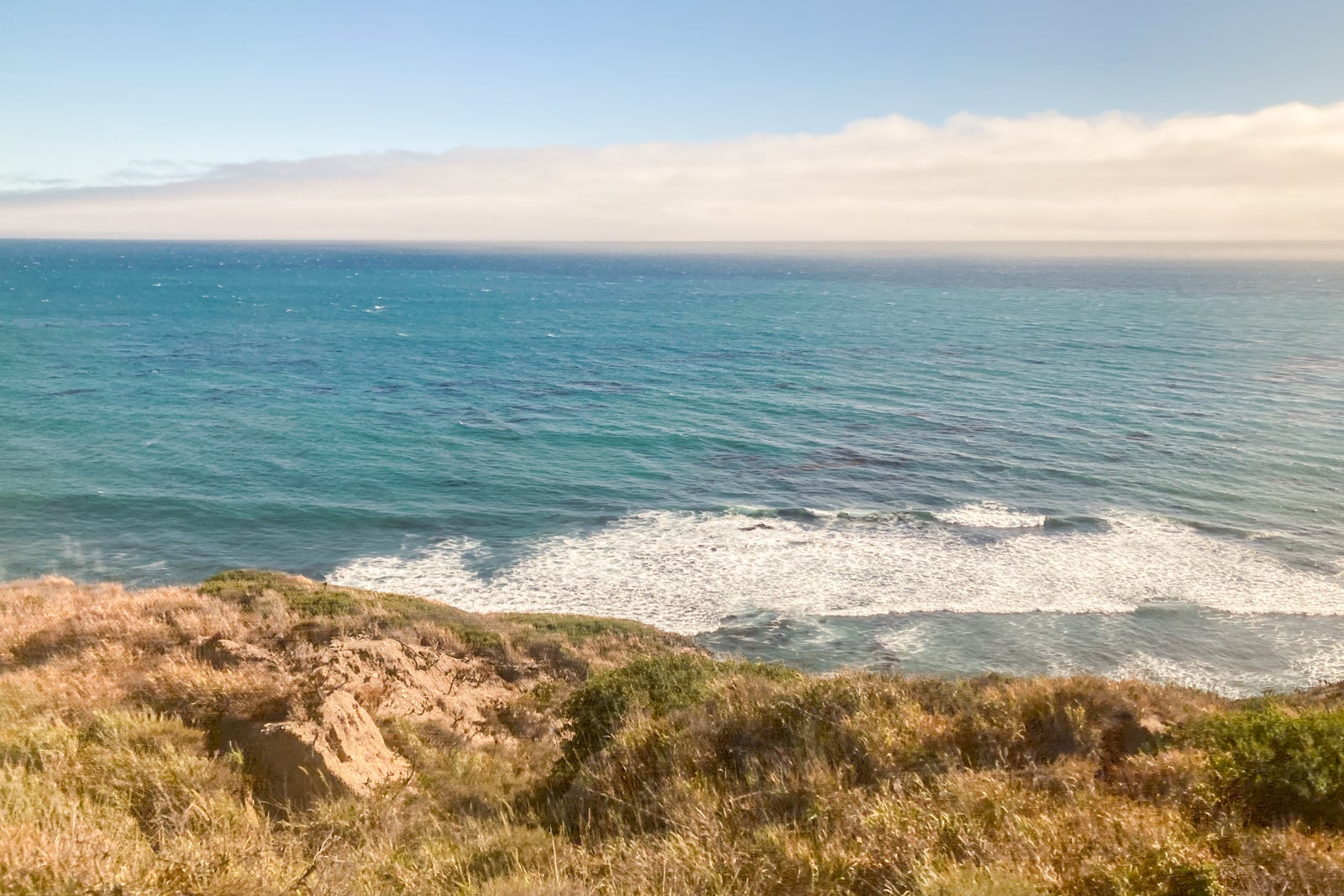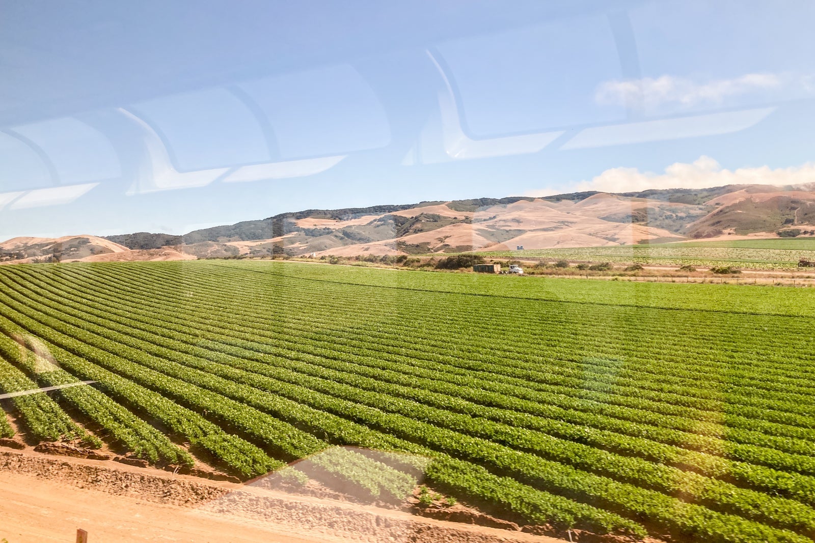 The Coast Starlight train left Sacramento and headed over to Oakland before turning south for San Jose, Salinas and San Luis Obispo. It's at this point that the scenery hits its peak: Until you pass Ventura, the train runs right along the coast. There are beautiful views over the cliffs, down to the Pacific Ocean below. Those of us on the observation car's upper deck even saw seals swimming near an empty beach.