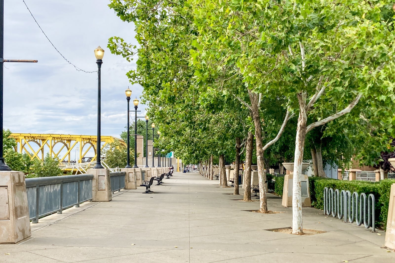 Along the Sacramento River, there are excellent paths for walking and riding bikes. Also, Tower Bridge (which crosses the Sacramento River) has the distinction of being the shortest highway in California, so you can walk across it and then tell people you walked a whole highway from one end to the other.
