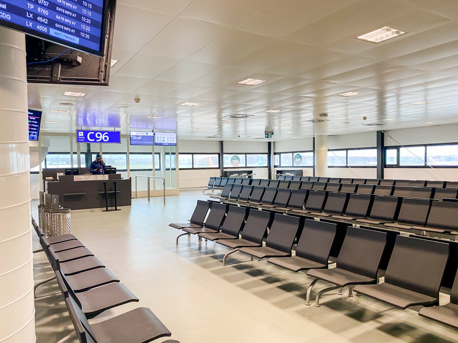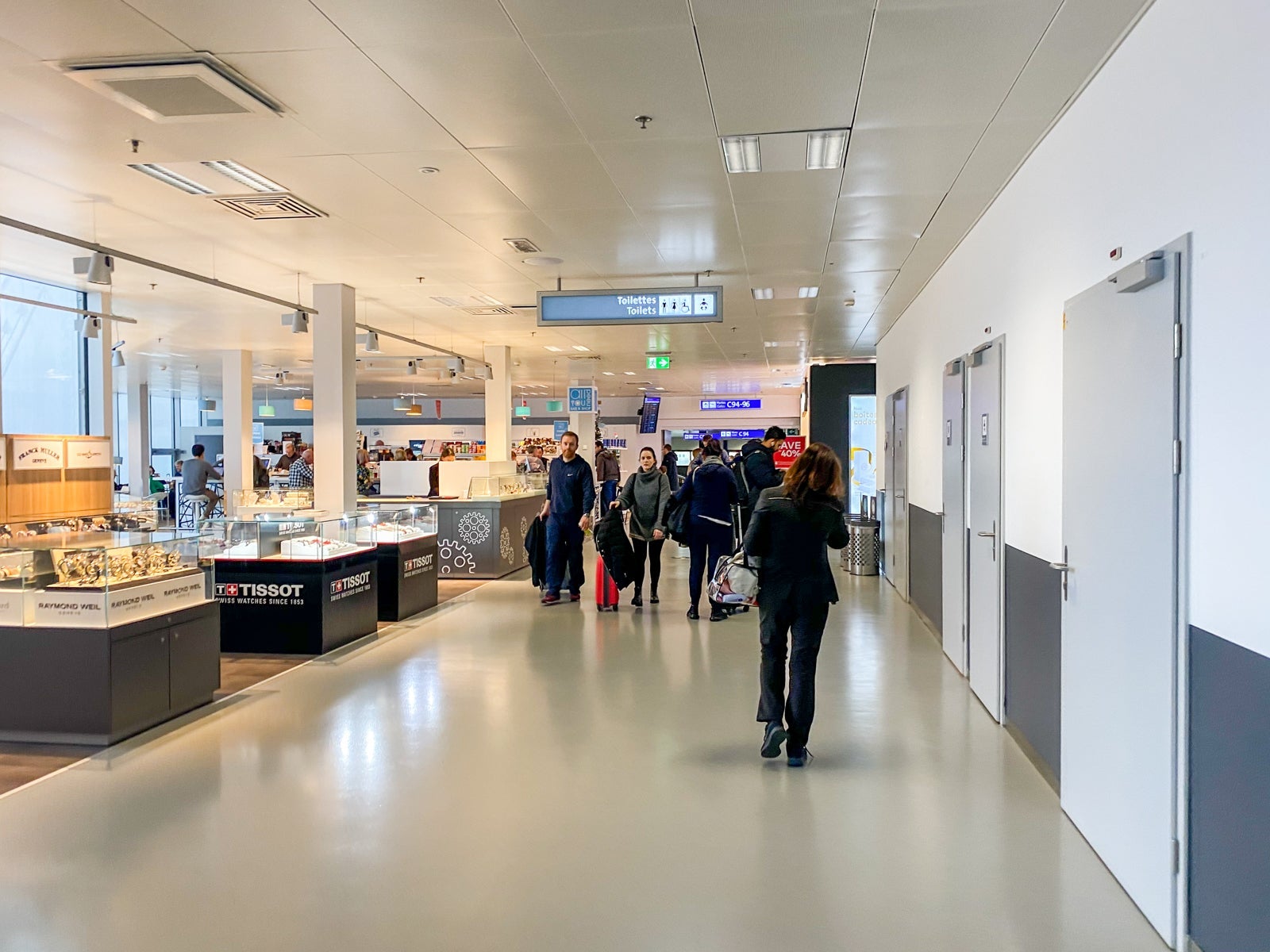 My gate info was not published until 30 minutes before boarding, which led to me standing awkwardly in the middle of the airport. After my gate, C96, popped up, I made my way through passport control and to the C gates. It's a small area with some duty-free shops and a sad grab-and-go store. (GVA technically has two terminals, but most flights leave from Terminal 1.)