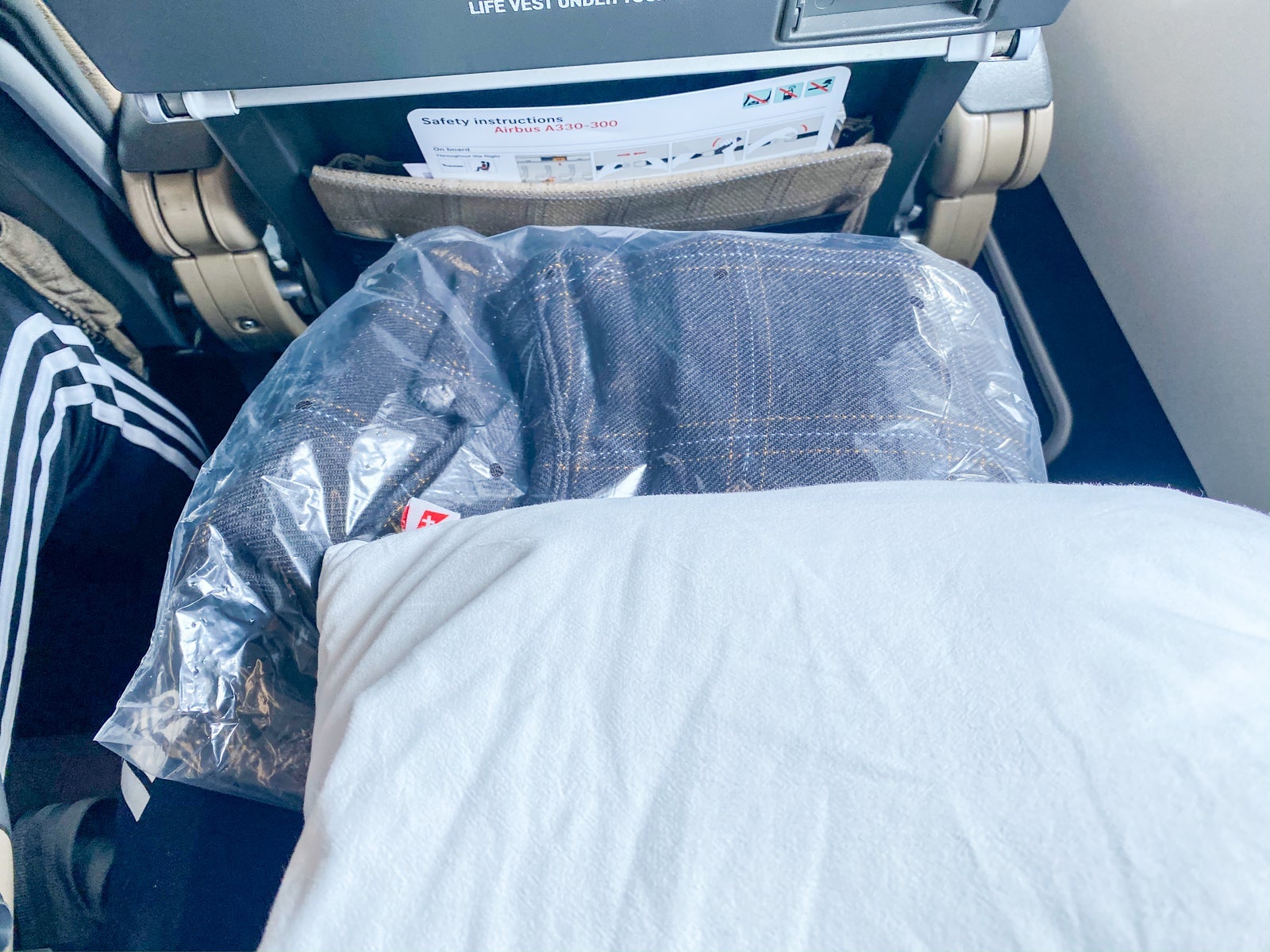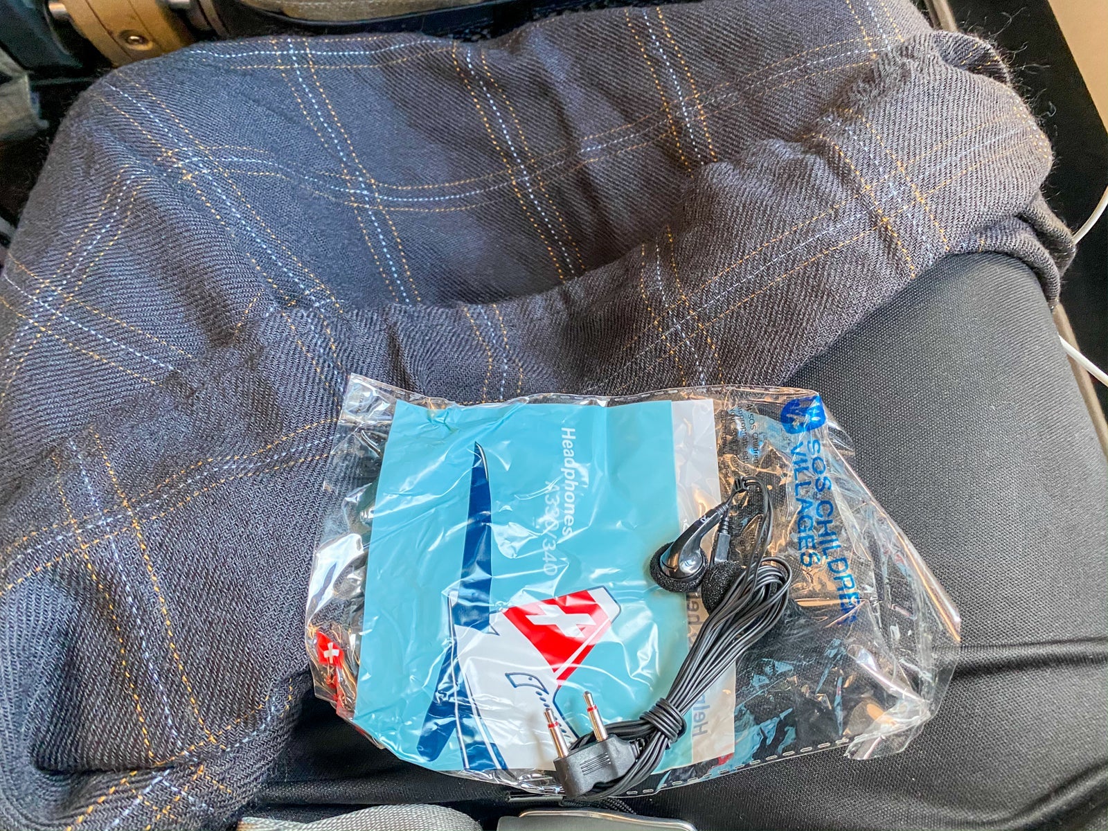 A blanket and pillow were waiting for me at my seat upon boarding, and they were good quality for economy class. The pillow was plush, and the blanket didn't feel scraggly at all. Some airlines supply amenity kits in economy, but Swiss does not.