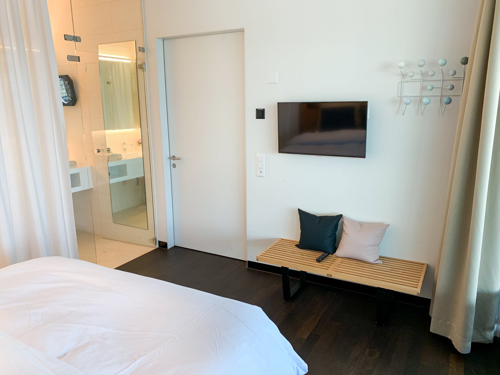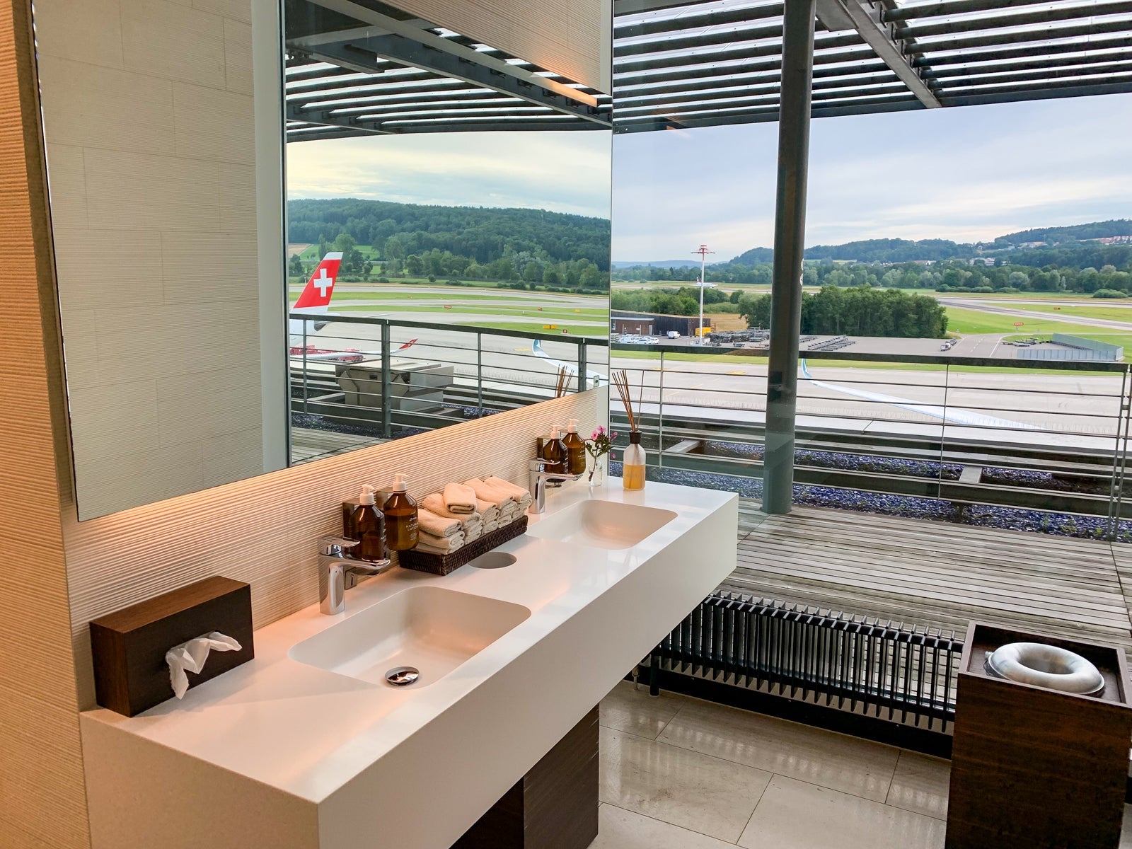 Staring at planes for hours can get exhausting. In what is arguably the best amenity at any lounge worldwide, Swiss offers two private hotel rooms with en suite bathrooms. After getting my fill of planes, I checked in to one of the hotel rooms.