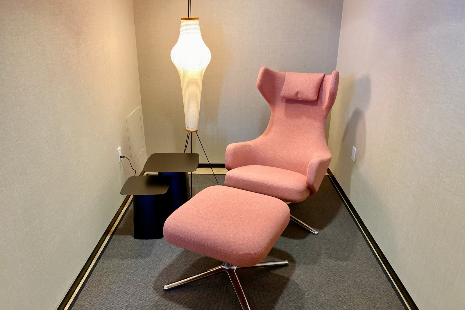 There's also a silent room with one single pink chair. For what's essentially dead space, I commend Swiss for actually turning this room into something useful, as opposed to making it a closet or otherwise closing it off.