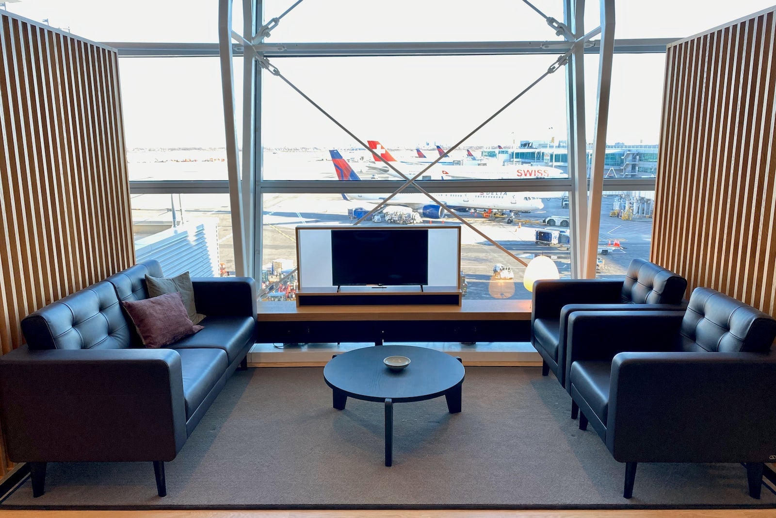And now there's a newly renovated lounge reopening there within the next two weeks — the Swiss Lounge at JFK. It closed for almost a year for a full renovation; what follows is our first look inside the refreshed space.