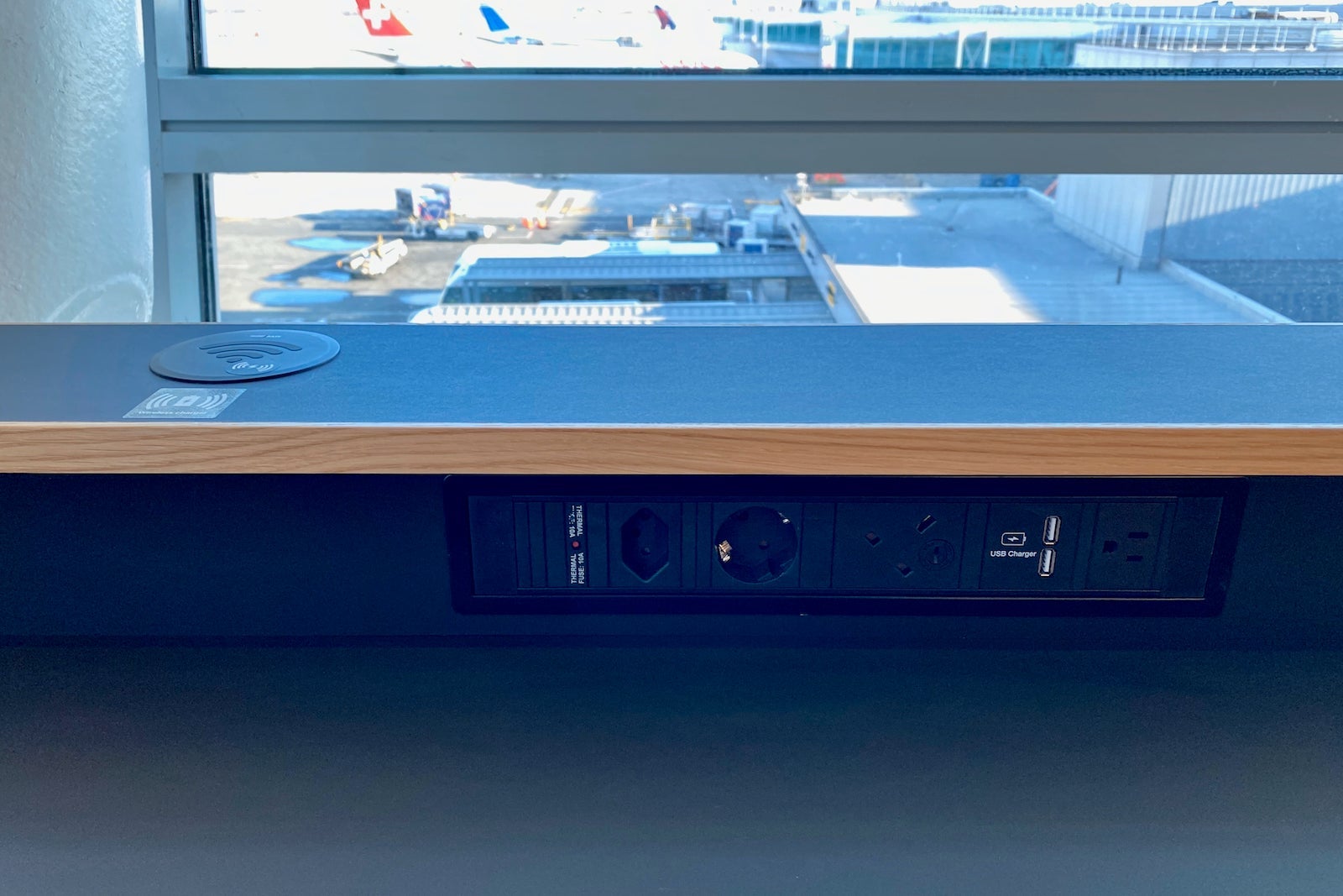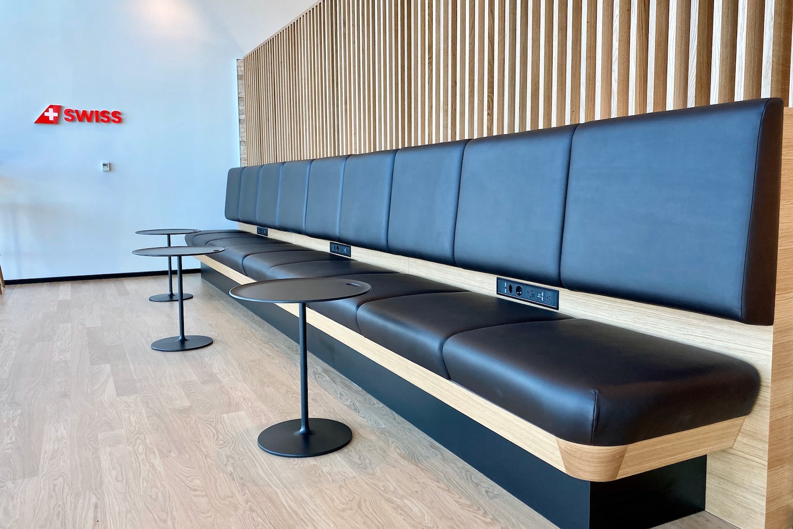 Some seats even have wireless charging mats and hidden coat hooks. And this ethos even extended to how Swiss sourced the raw materials for the lounge. Most of the wood and leather chairs come directly from Switzerland.