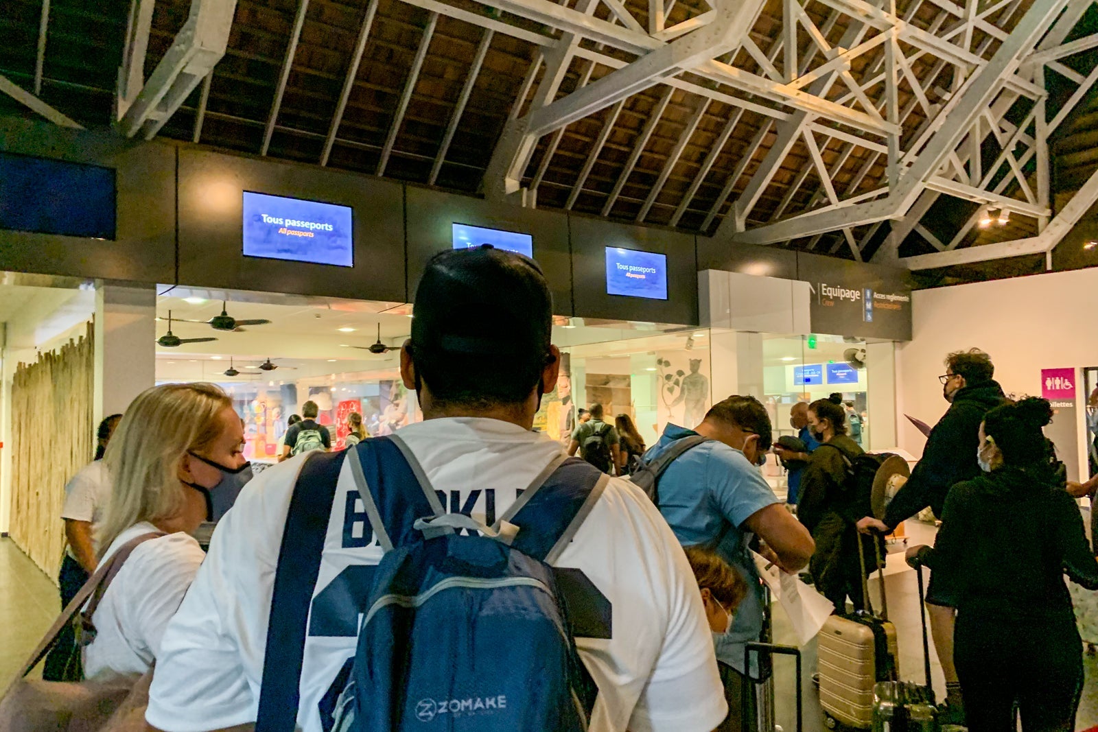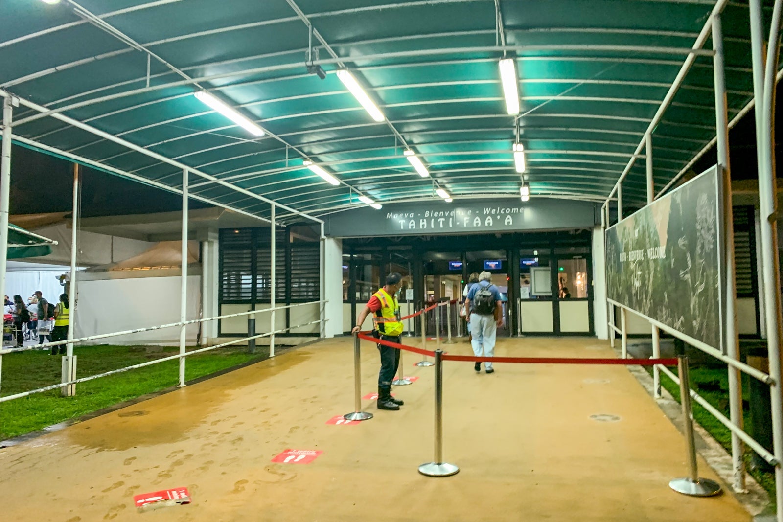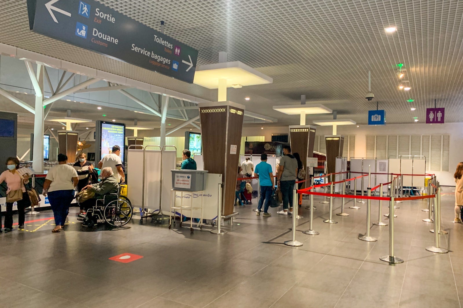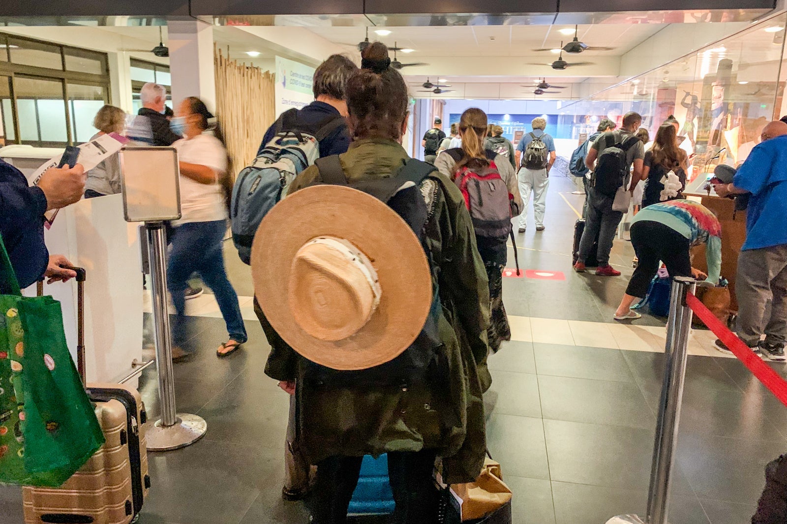 As soon as you enter the arrivals hall, you are greeted by an airport employee who directs you to one of two lines. To add to the ambiance, there is a three-person Polynesia band playing in the arrivals hall.