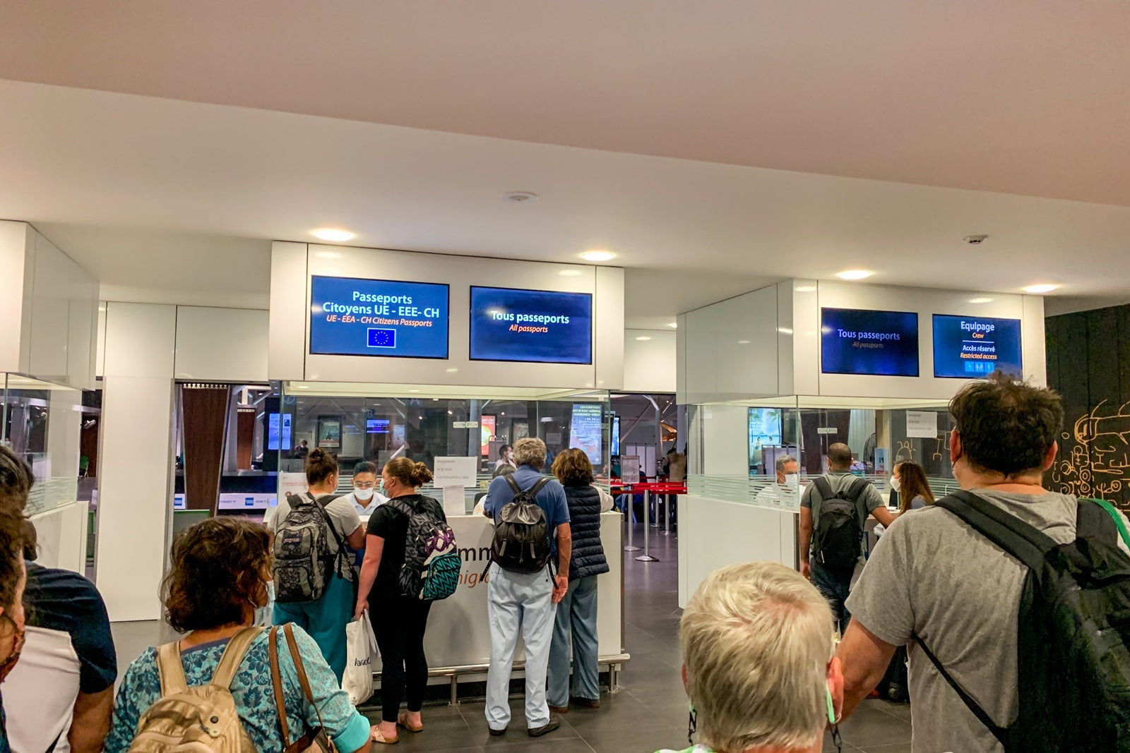 He sent me along to another, longer line that snaked through the terminal to immigration. The immigration agent wanted my form for immigration status and asked me where I was staying. He checked my passport too and stamped it. He also wanted to see the printout of my negative COVID-19 test results again. When I struggled to find my test paper, he waved me through.