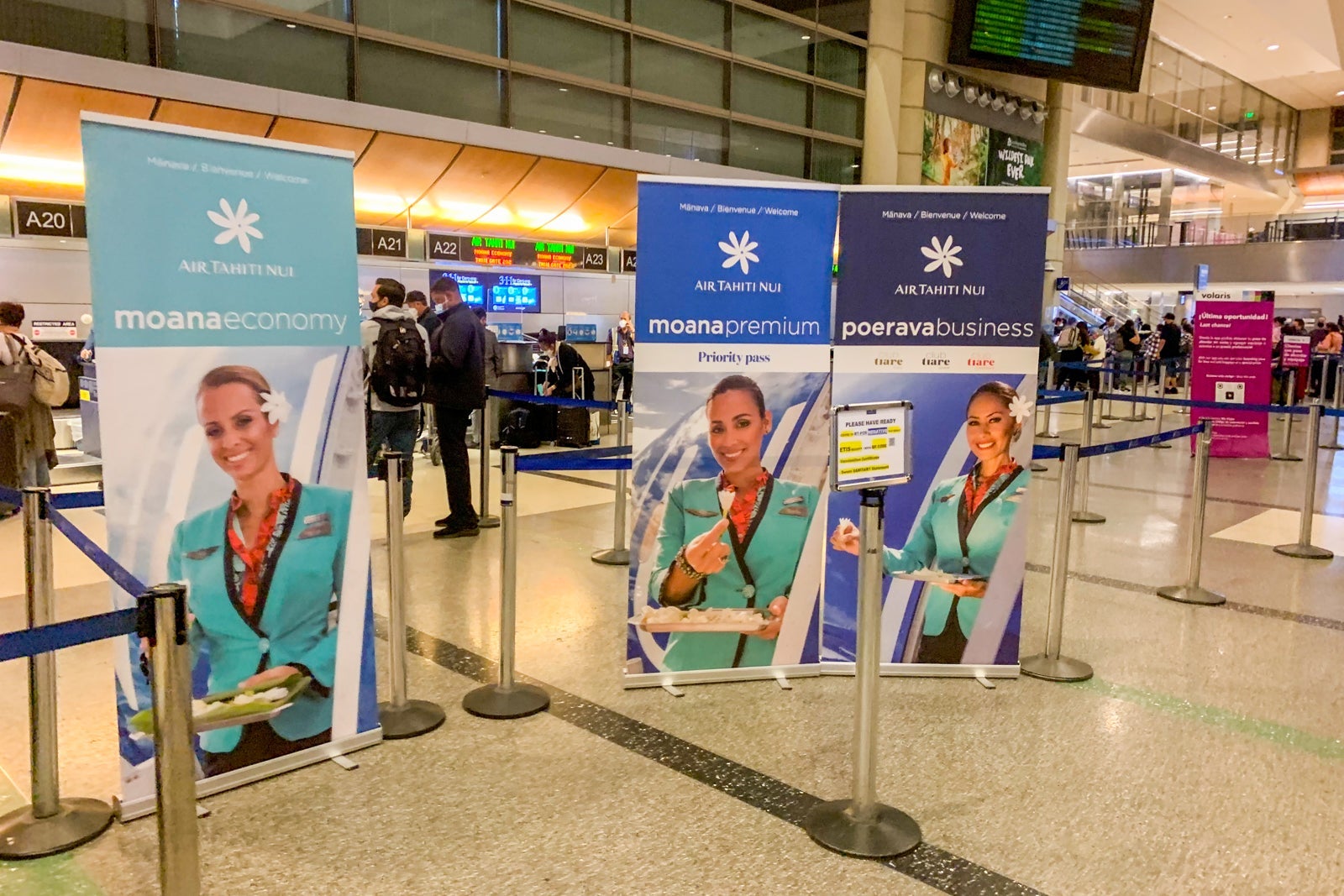 I tried to stop by the Air Tahiti Nui ticket counter on Friday night around 9 p.m. to check my papers, but the lines were very long and the agent at the premium counter told me he couldn't spare the time with the check-in line as long as it was.