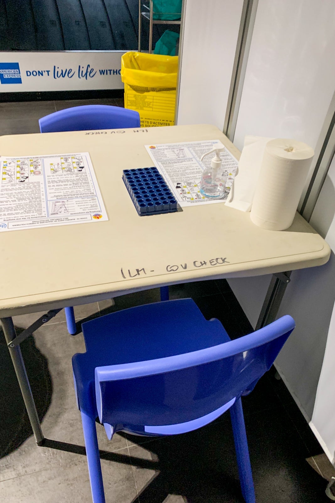 The guy who checked my form was very friendly, asked for my name and then handed me a self-test kit with my name written on it.