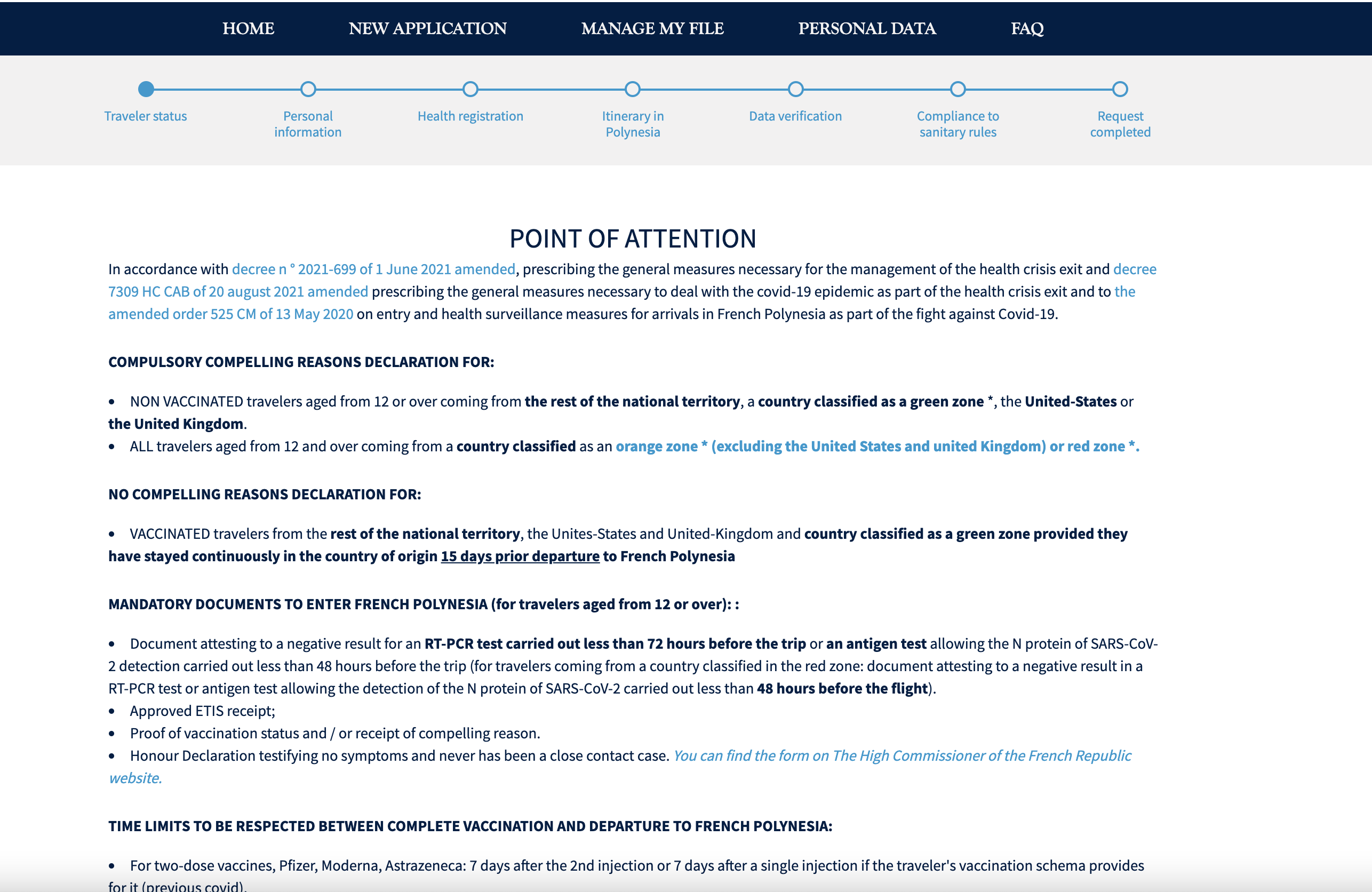 You can follow along with the steps in the attached gallery. Note that you'll need all your details, including arrival and departure information, hotel phone numbers and addresses and any inter-island travel you'll be doing. Finally, you pay a 5,000 XPF fee for health monitoring costs (about $49).