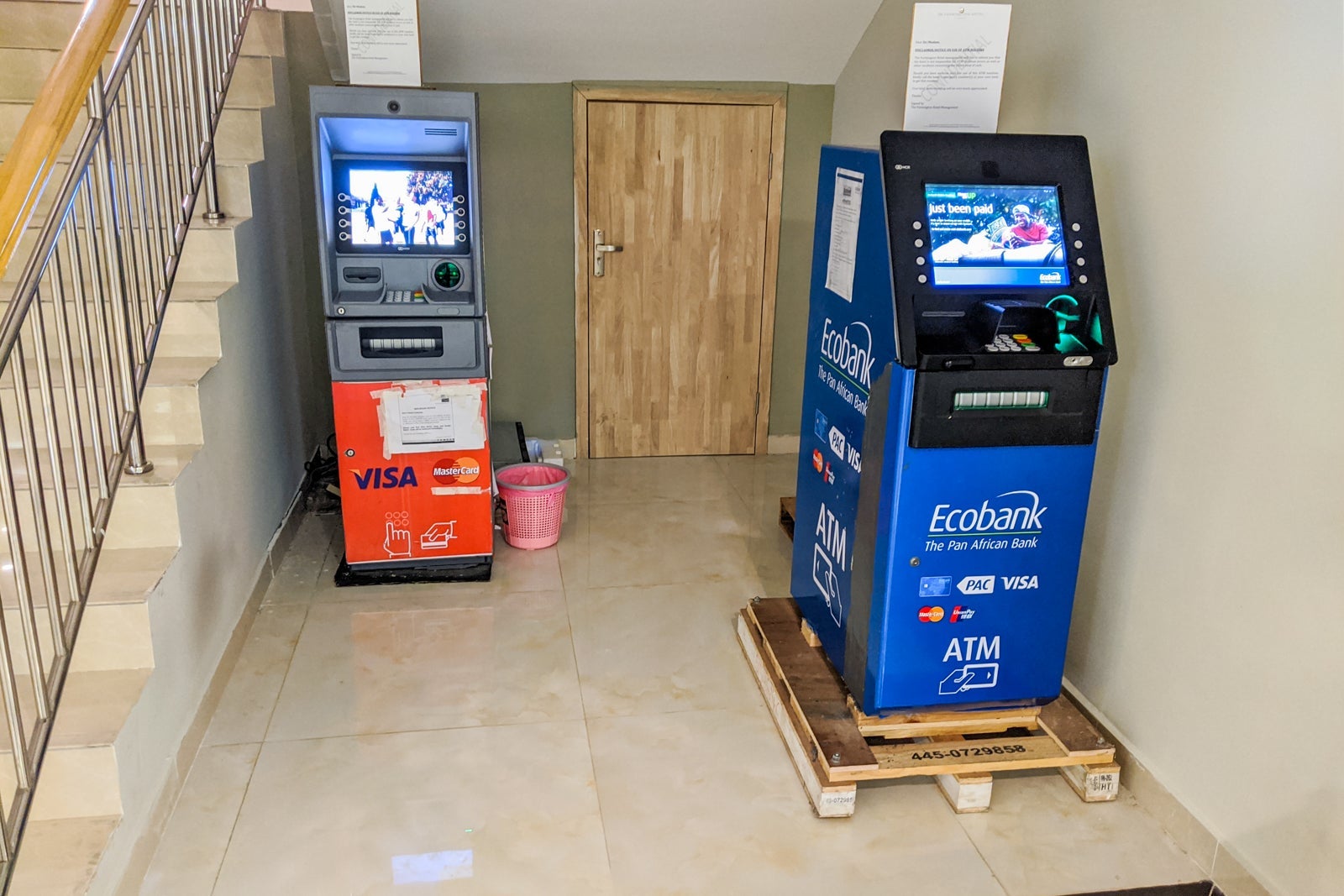We saw only a few working ATMs during our entire time in the country. Most either were shut off or had signs indicating that they didn't have cash. Two of the working ATMs were at the airport hotel, and both had a sign on top of them warning patrons that any distribution errors aren't the responsibility of the hotel.