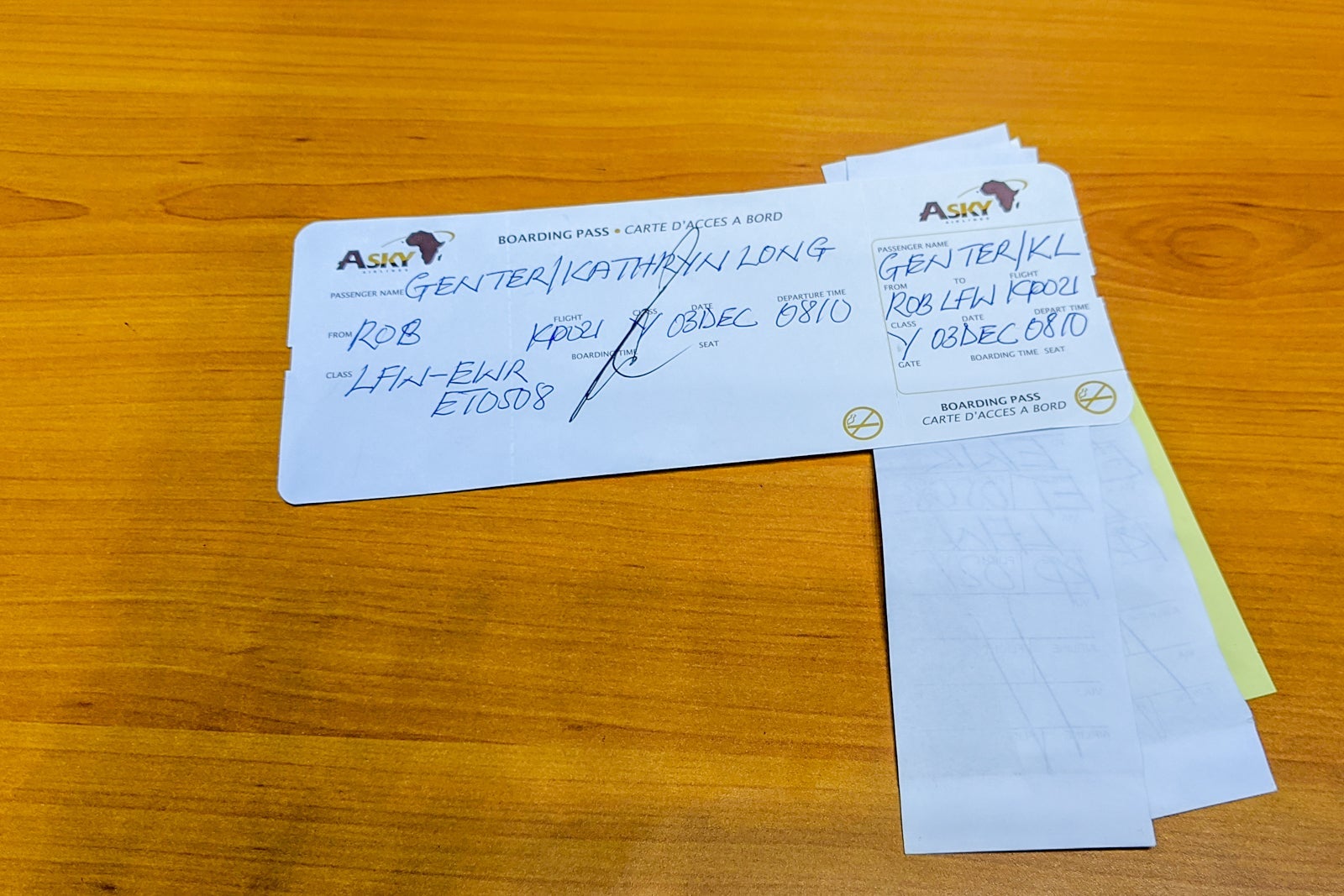Still, you'll want to have managed expectations about the country's only international airport. There are two jet bridges, a simple lounge for business-class passengers. Some boarding passes and baggage tags are written by hand.