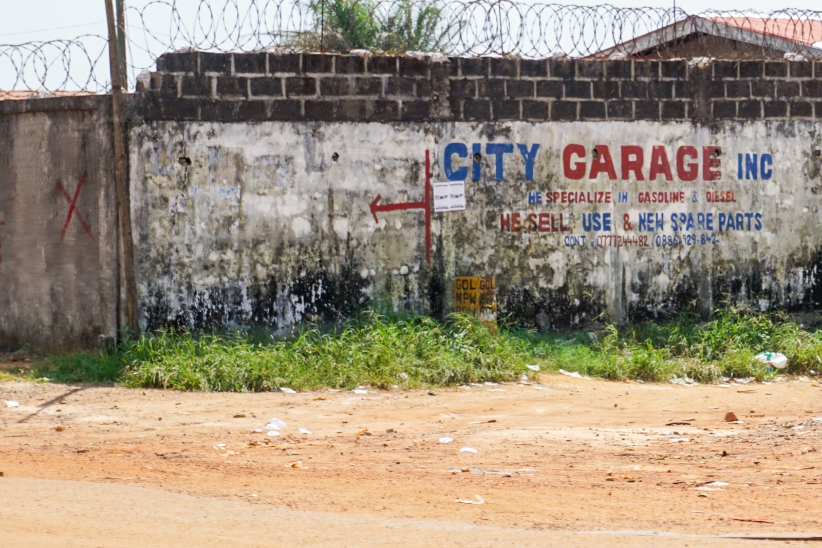 Almost all of the roads that we traveled on were paved, however, and it seems Liberia has plans to expand its main roads. We saw spray-painted Xs on many buildings, kiosks, sheds and signs along certain roads to show where construction is planned. On buildings not completely in the way and on some walls, lines were drawn showing how much would have to be removed for the new roadway.