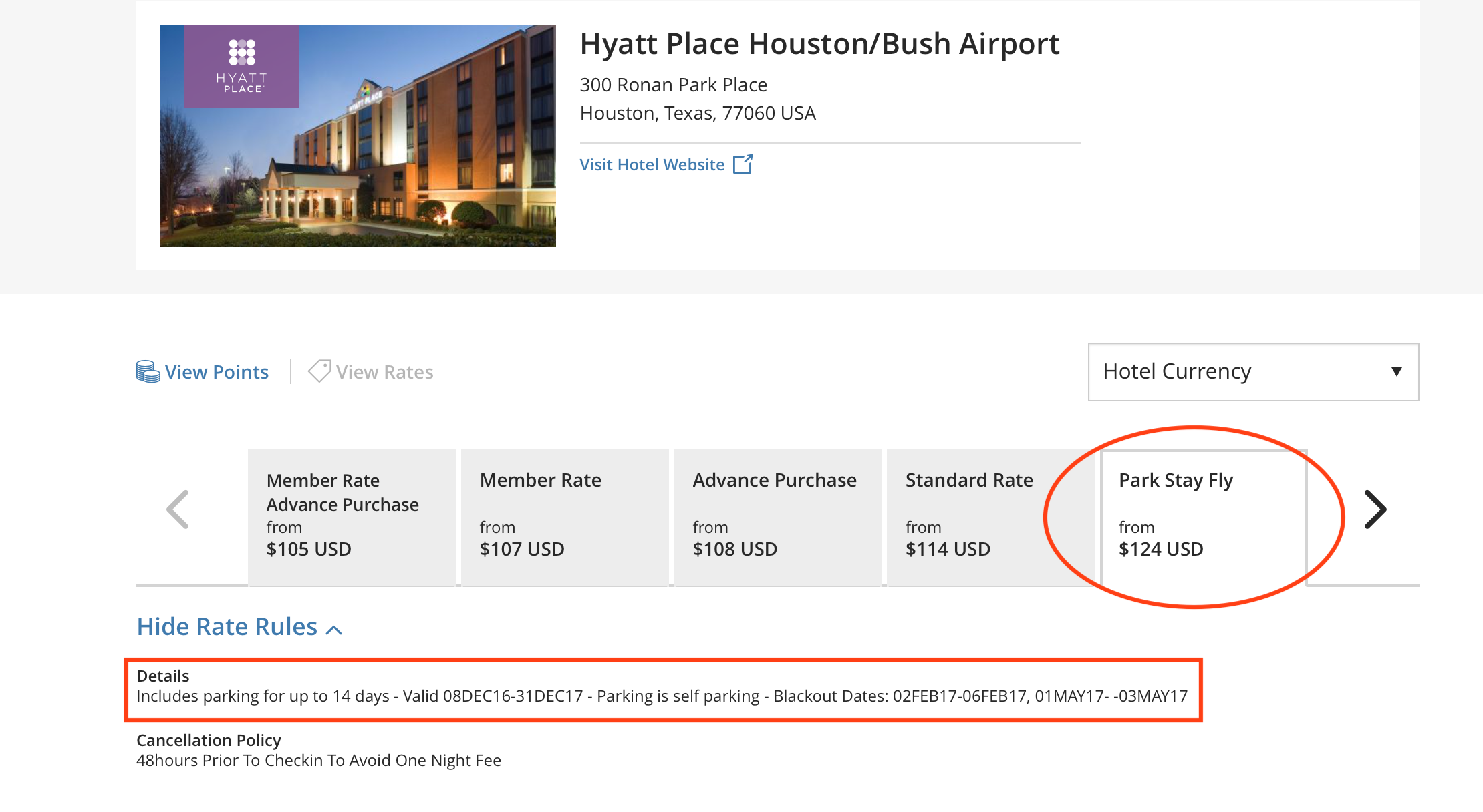 For example, when I stayed at the Hyatt Place Houston-North property by IAH (formerly known as Hyatt Place Houston/Bush Airport), there was an option to book the Park Stay Fly package, which was only $19 more than the basic cost of a hotel night and included up to 14 days of parking. In other words, parking would cost just $1.35 per day on a 14-day trip.