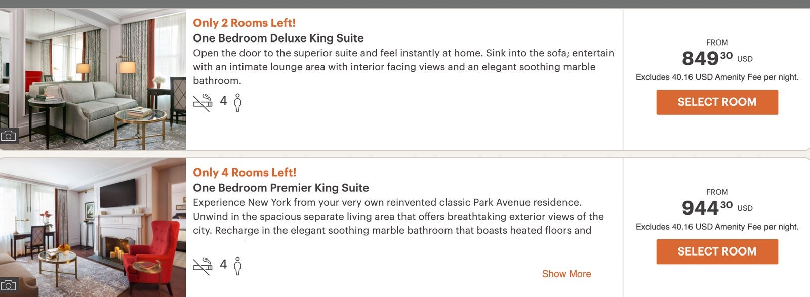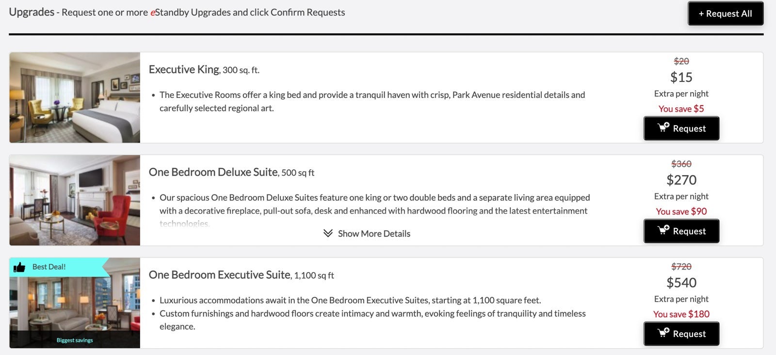It would have been nice to get a bigger suite. By 3 p.m., the hotel was still showing three of its one-bedroom Deluxe King suites available for sale at a base rate of $858.80 and five of its one-bedroom Premier King suites at a base rate of $953.80.