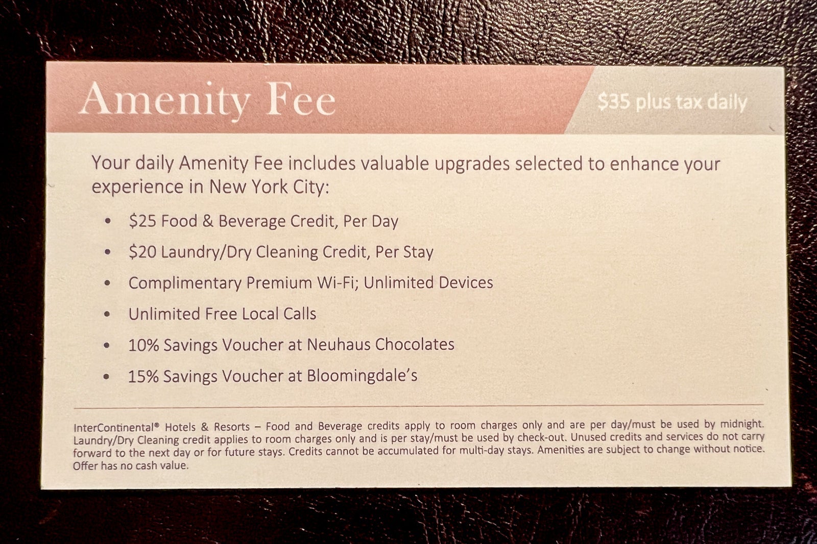 Being "well-heeled" does not come cheap. The base rate was $407.55 for the one-night stay on Thursday. But hold on, there is also a "daily amenity fee" of $35 plus tax — it comes to $40.16 per night — that included a $25 daily food and beverage credit and a $20 per stay laundry credit. All in, including over $60 in taxes, the stay would cost $511.32.