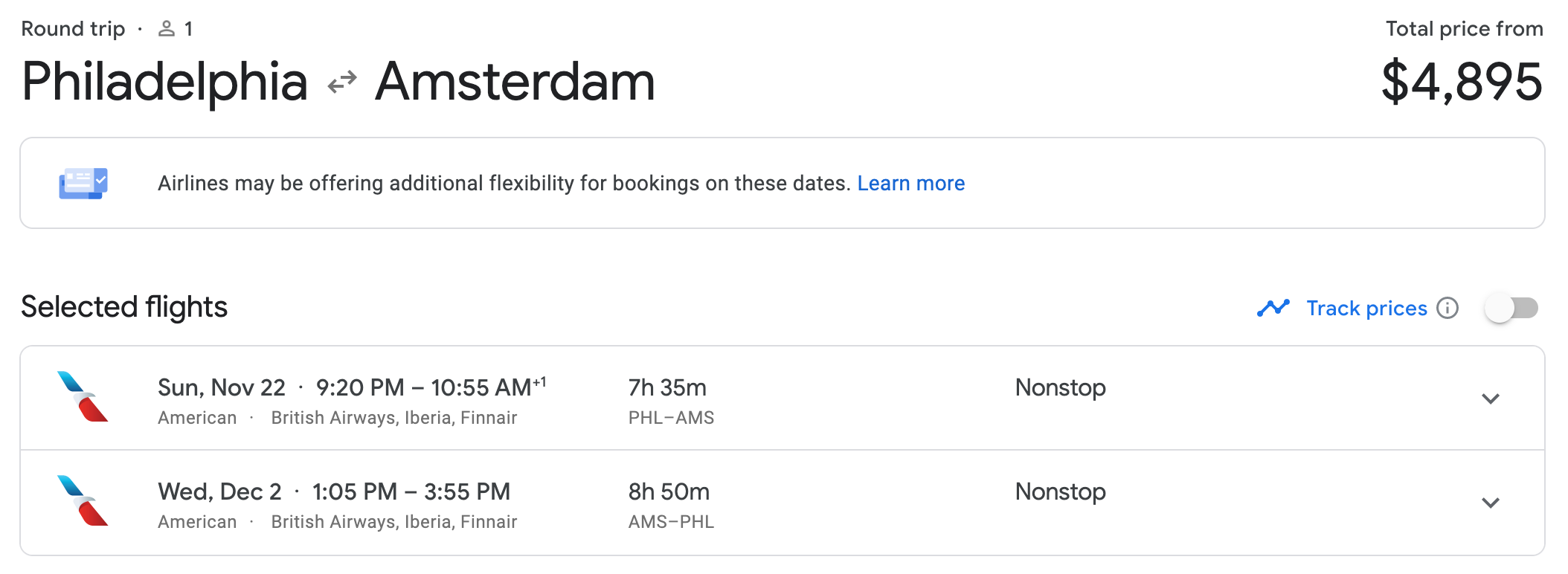 Remember, you'll still need to purchase an economy ticket to take advantage of these upgrades, but you can score a pretty excellent deal. For example, an upgradeable flight from Philadelphia (PHL) to Amsterdam (AMS) starts at just $560 at the time of writing this article.