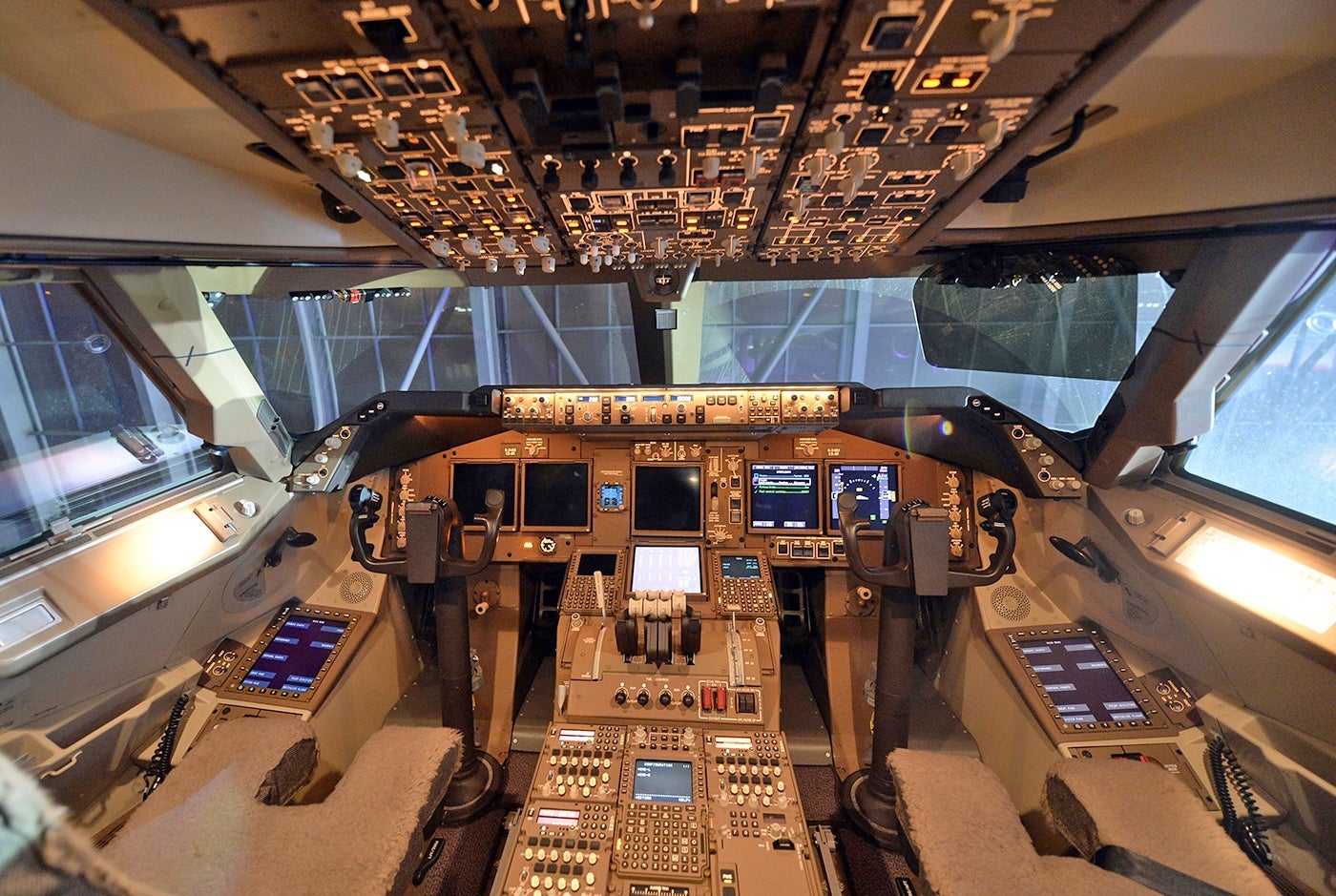 ...versus the digital cockpit of the latest version, the 747-8, seen here in 2014 in Beijing, China: