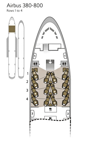 There are 10 window seats and four seats in the middle that are best suited those travelling with others and wish to be able to talk with their companion during the flight. The footrest of each seat also functions as a 'buddy dining seat', which allows two passengers to eat together. These are tight though, particularly at the shoulder.