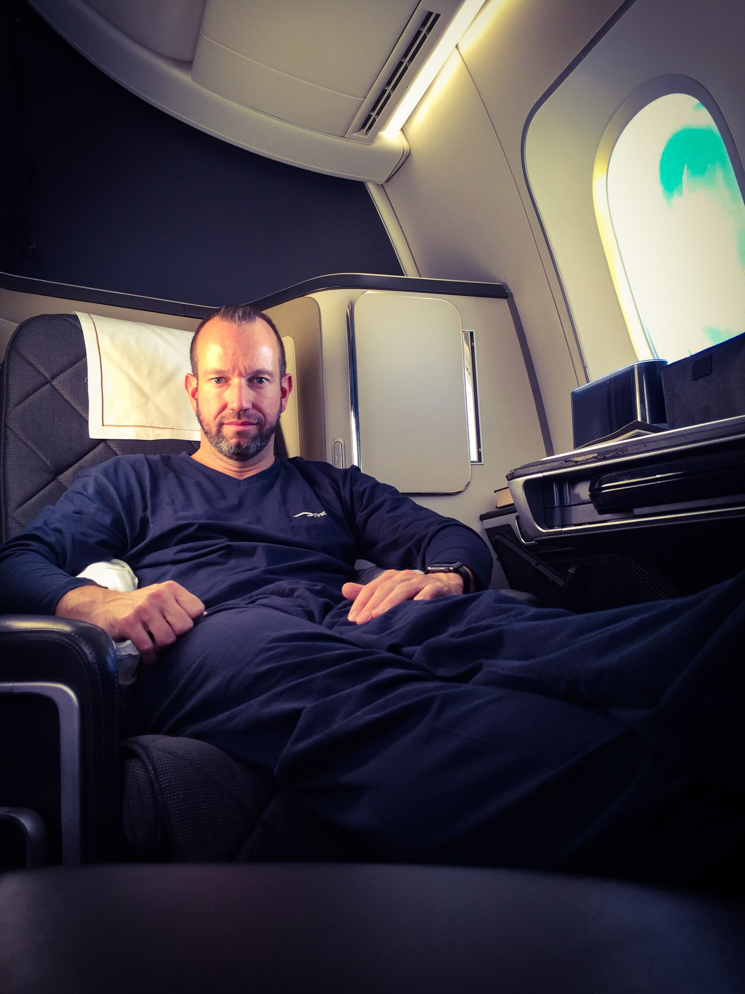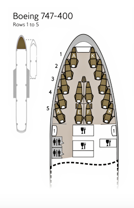 There are two crew members for the eight first passengers, and many think this is the best BA first-class seat. It is likely that a version of this seat will be used for the soon-to-come 777-9 first cabin. The downside for me of this cabin is that there is through traffic (unlike on the 747, and to a lesser extent on the A380), and a common criticism is that there is only one bathroom for the whole first-class cabin.