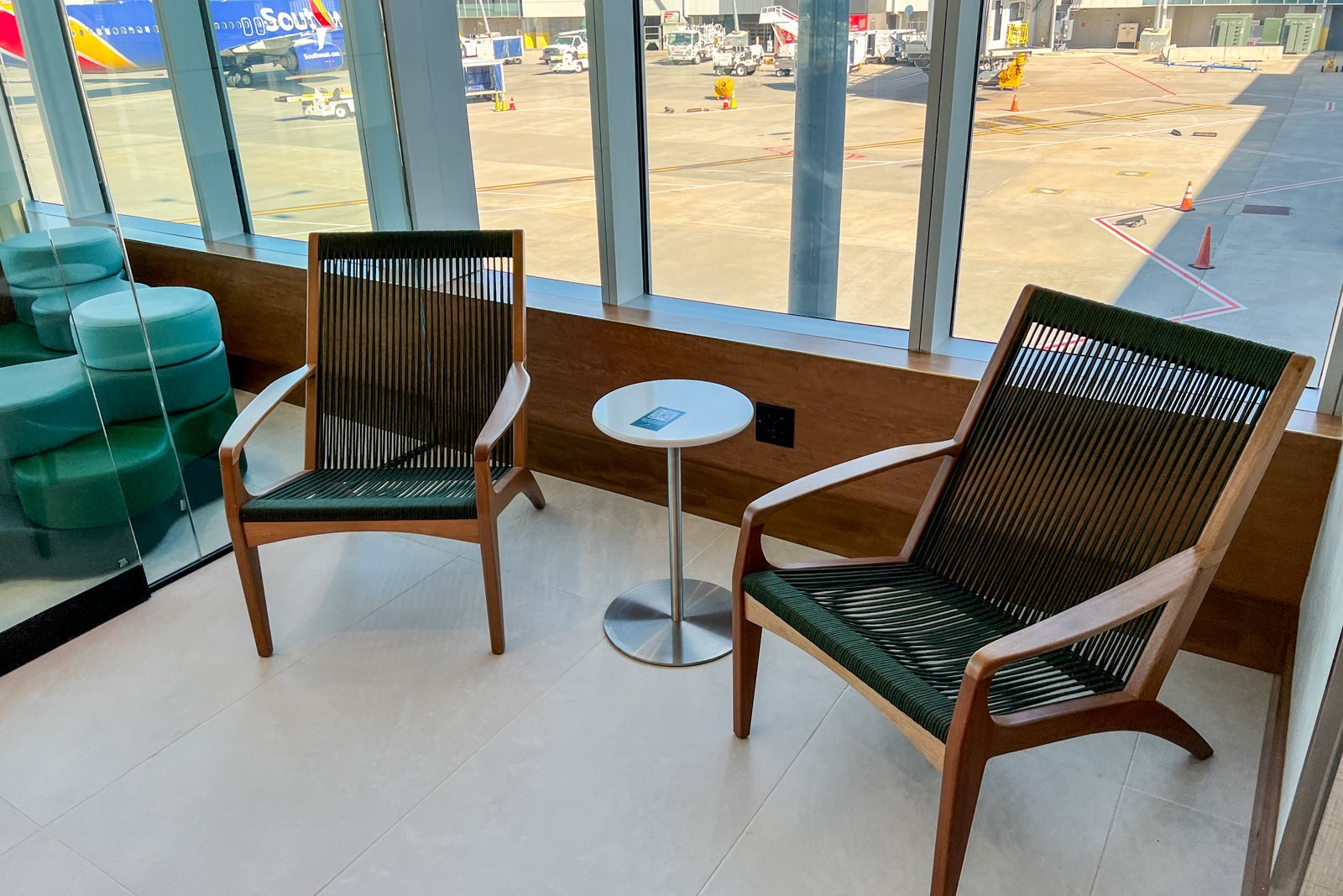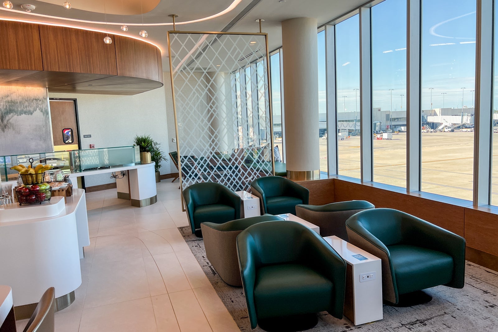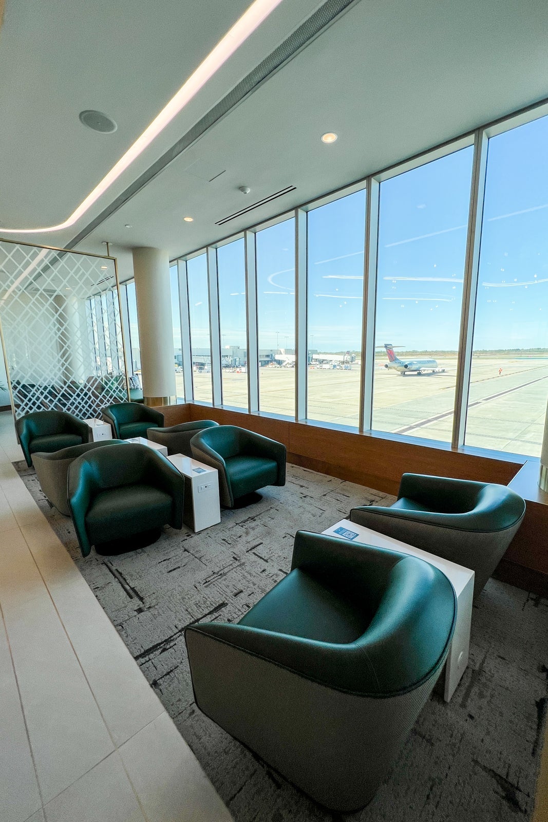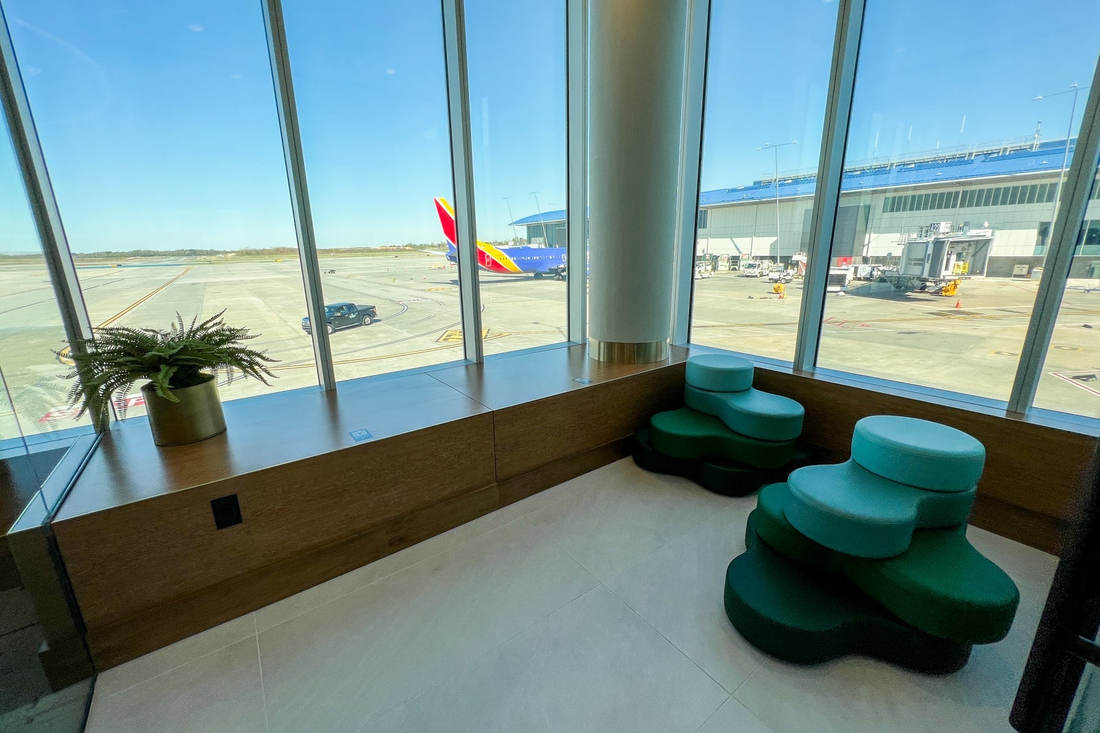There's seating along the back wall of the lounge as well, with sweeping runway views and plenty of natural light.