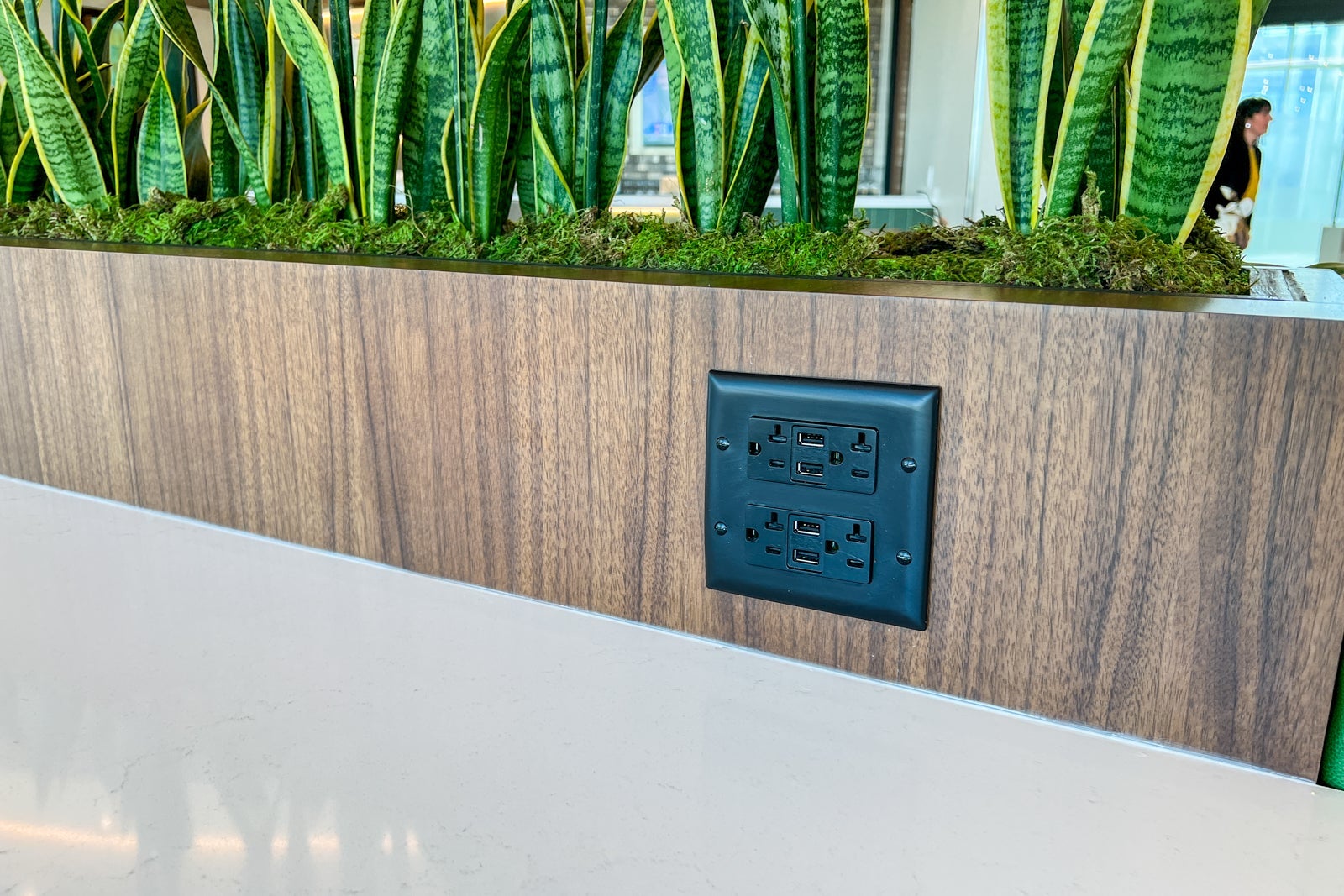 You will find power outlets throughout the lounge too. In fact, almost every seat in the lounge is accompanied by a standard outlet and a USB port, so it's not hard to stay charged.