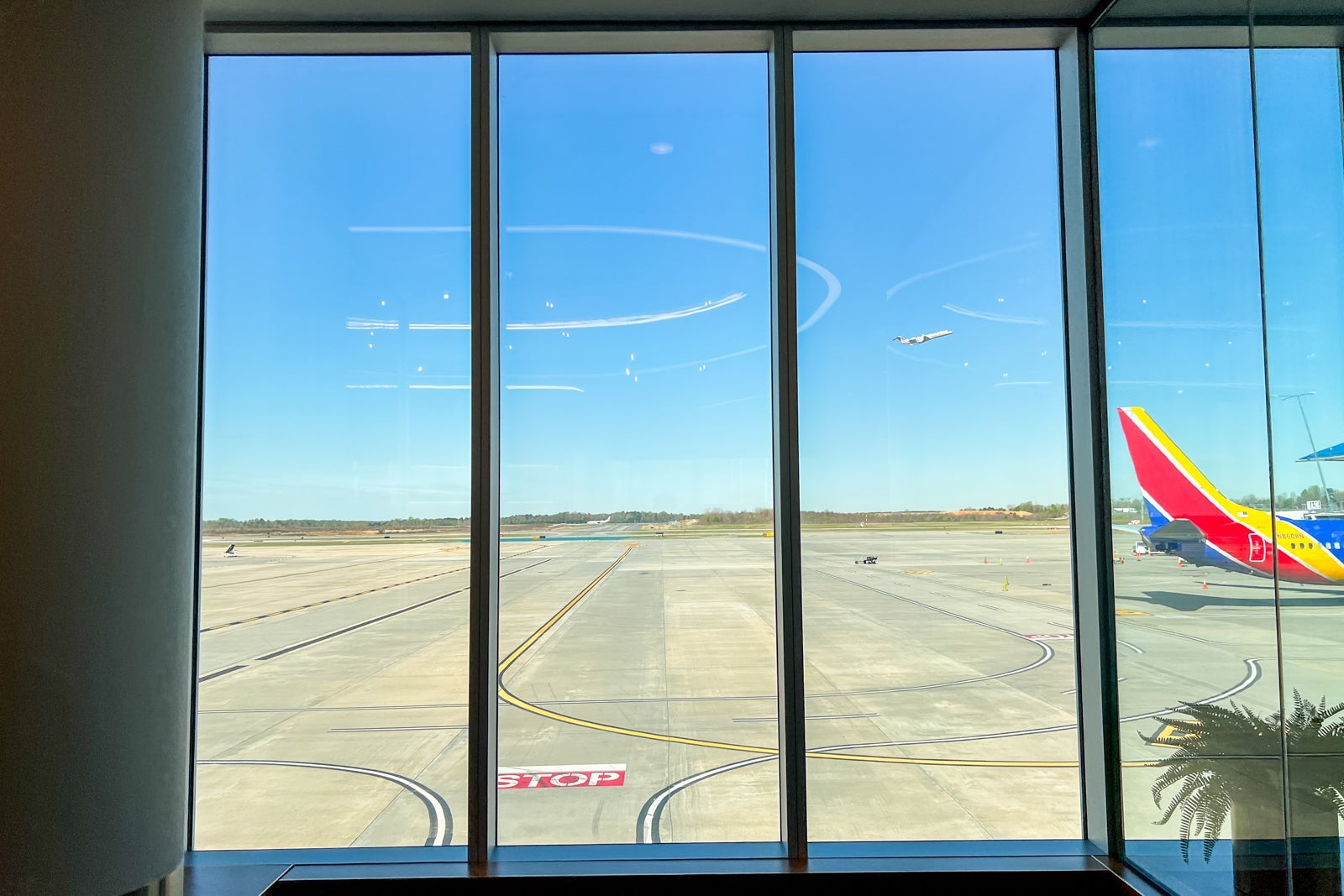 But the best benefit of the lounge? The views. It's a great place for planespotting, as you're right up against the runway and sandwiched between two rows of gates. You might even see a military plane take off, as the Air Force has a handful of aircraft based at CLT.