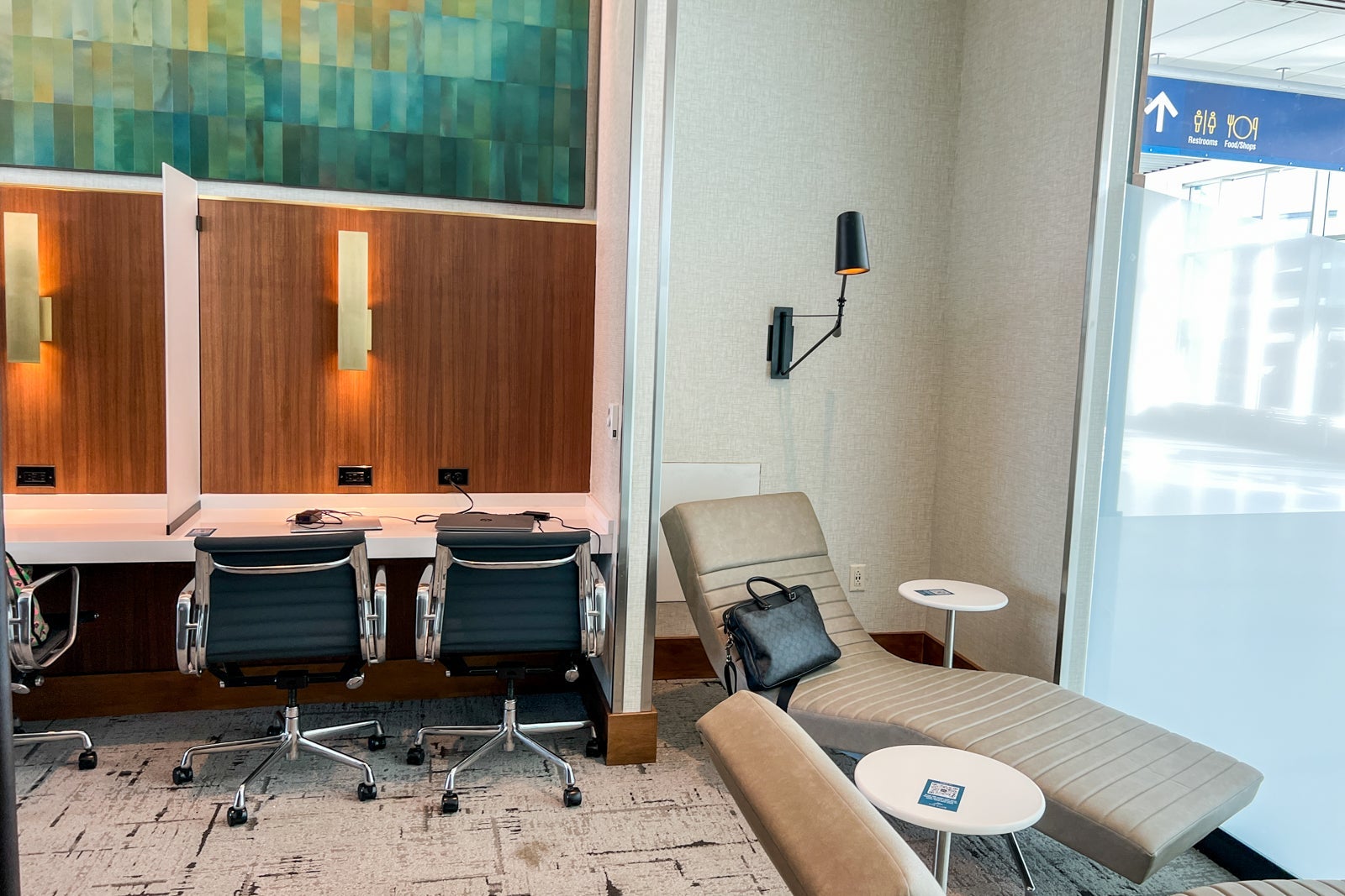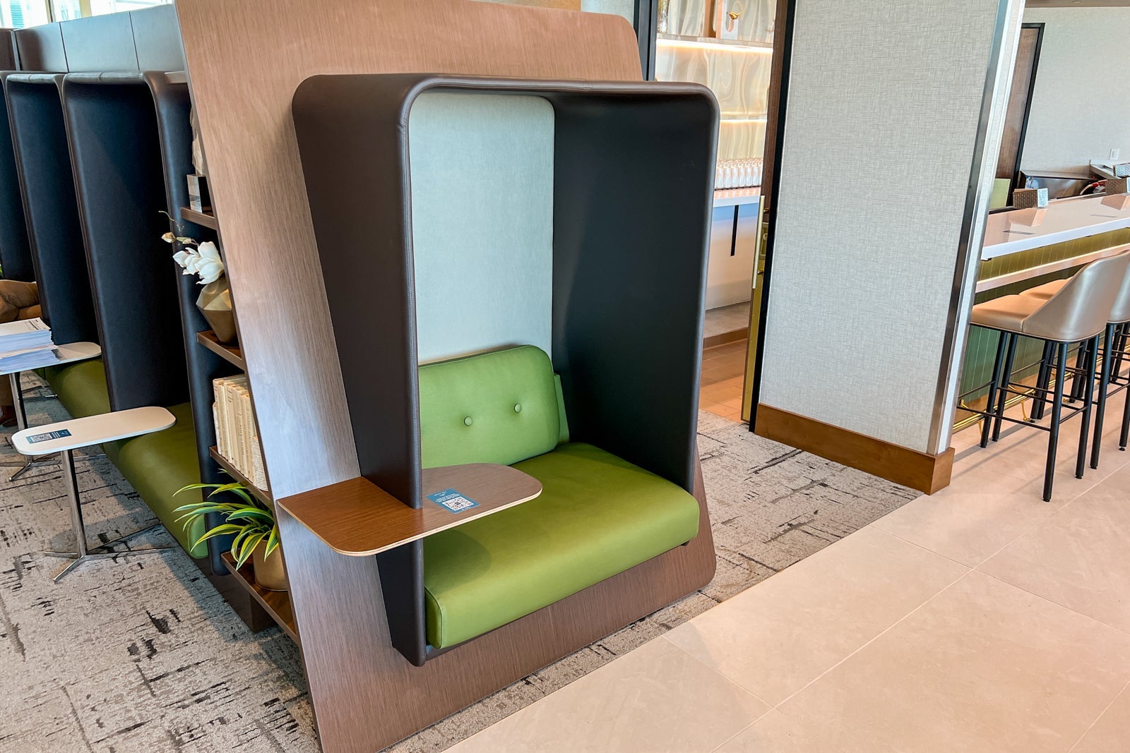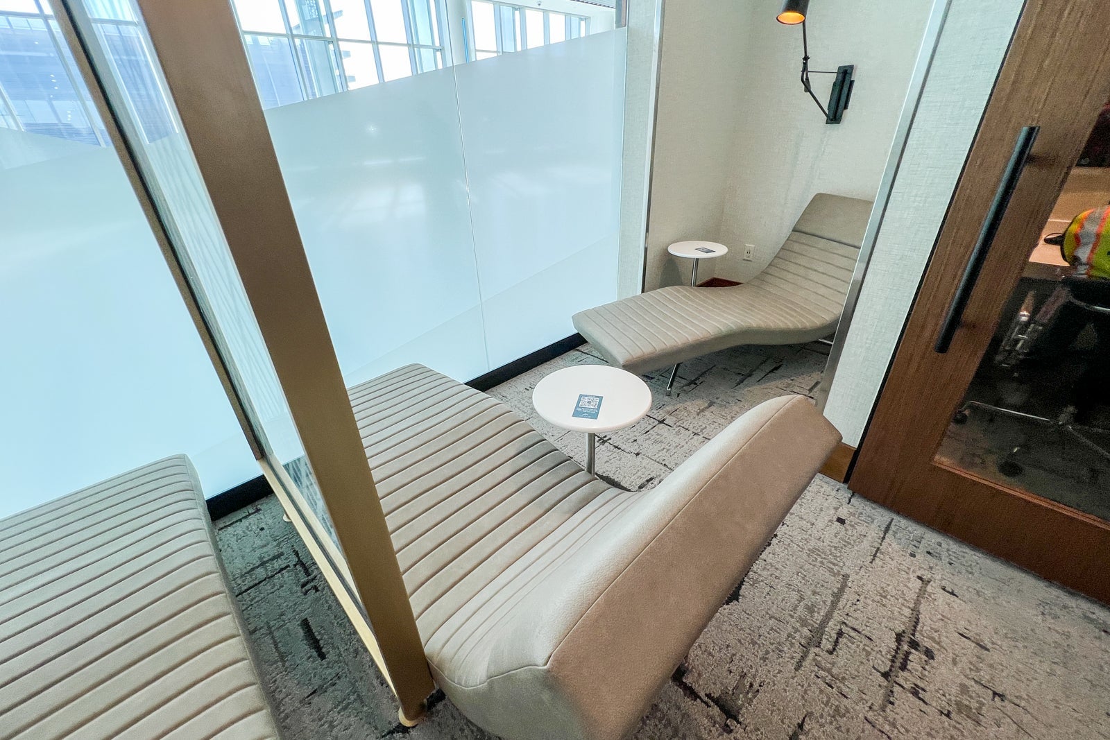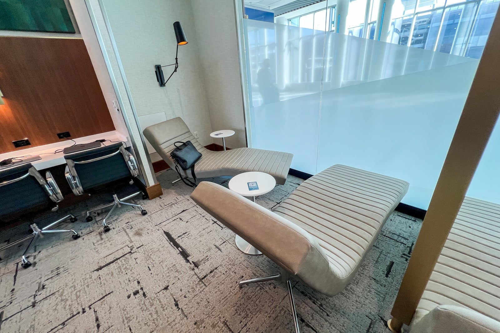 Finally, there are napping chairs next to the offices. I can't see myself actually napping in a crowded airport lounge, but they look like a comfortable place to relax during a long layover. If you need to actually sleep, consider using Priority Pass to enter the nearby Minute Suites.
