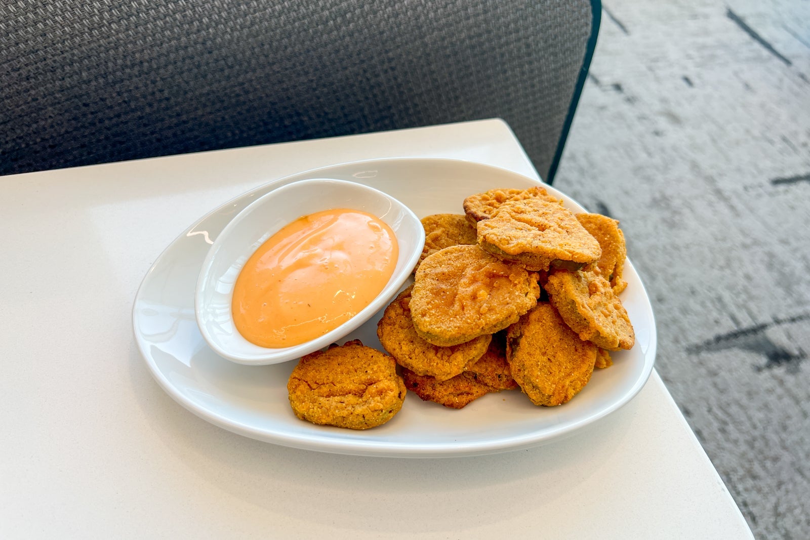 For lunch, I was treated to an open-face barbecue sandwich, cornbread and fried pickles. I was a huge fan of each of these — each tasted like it could have easily come from a restaurant.