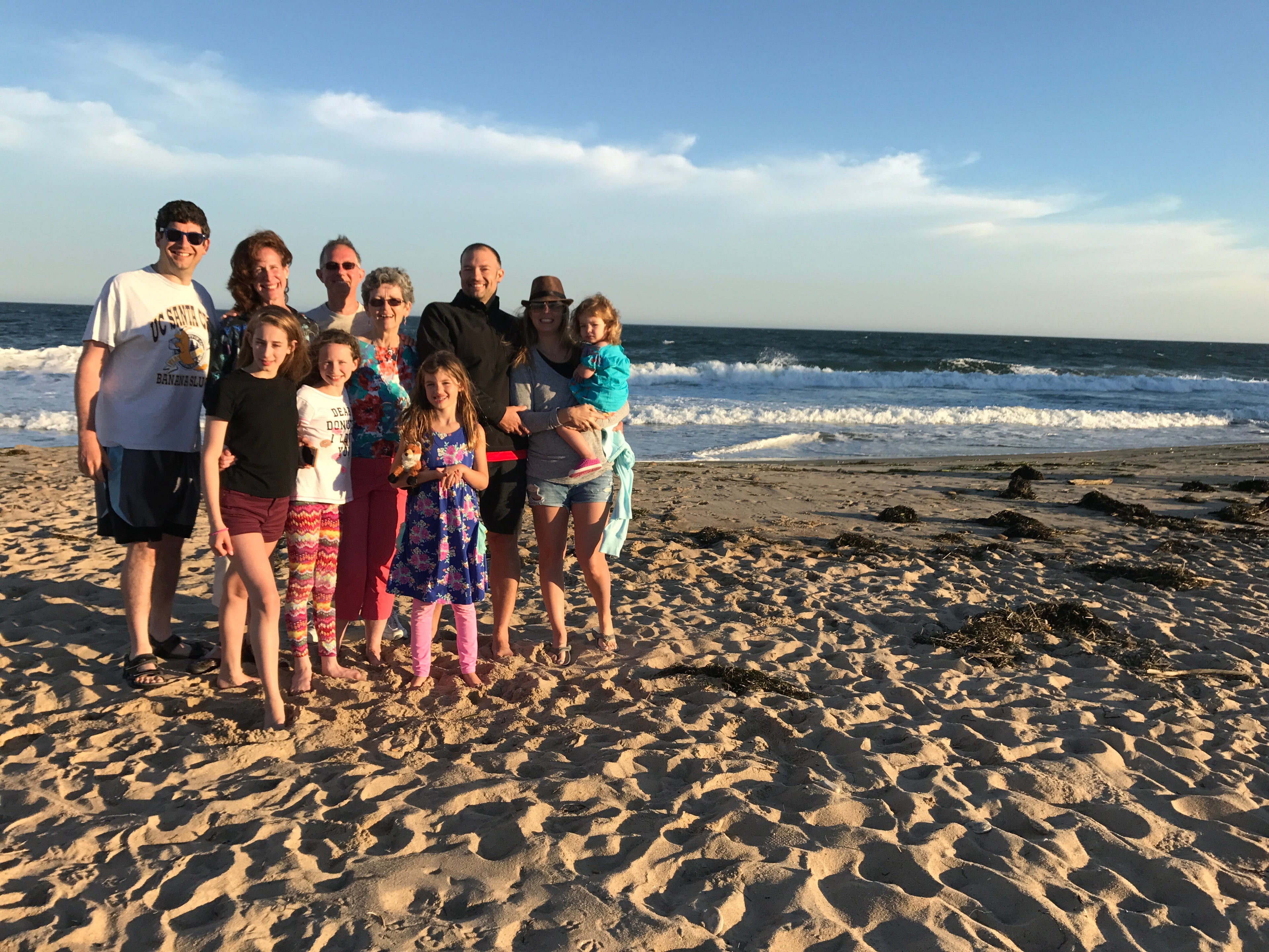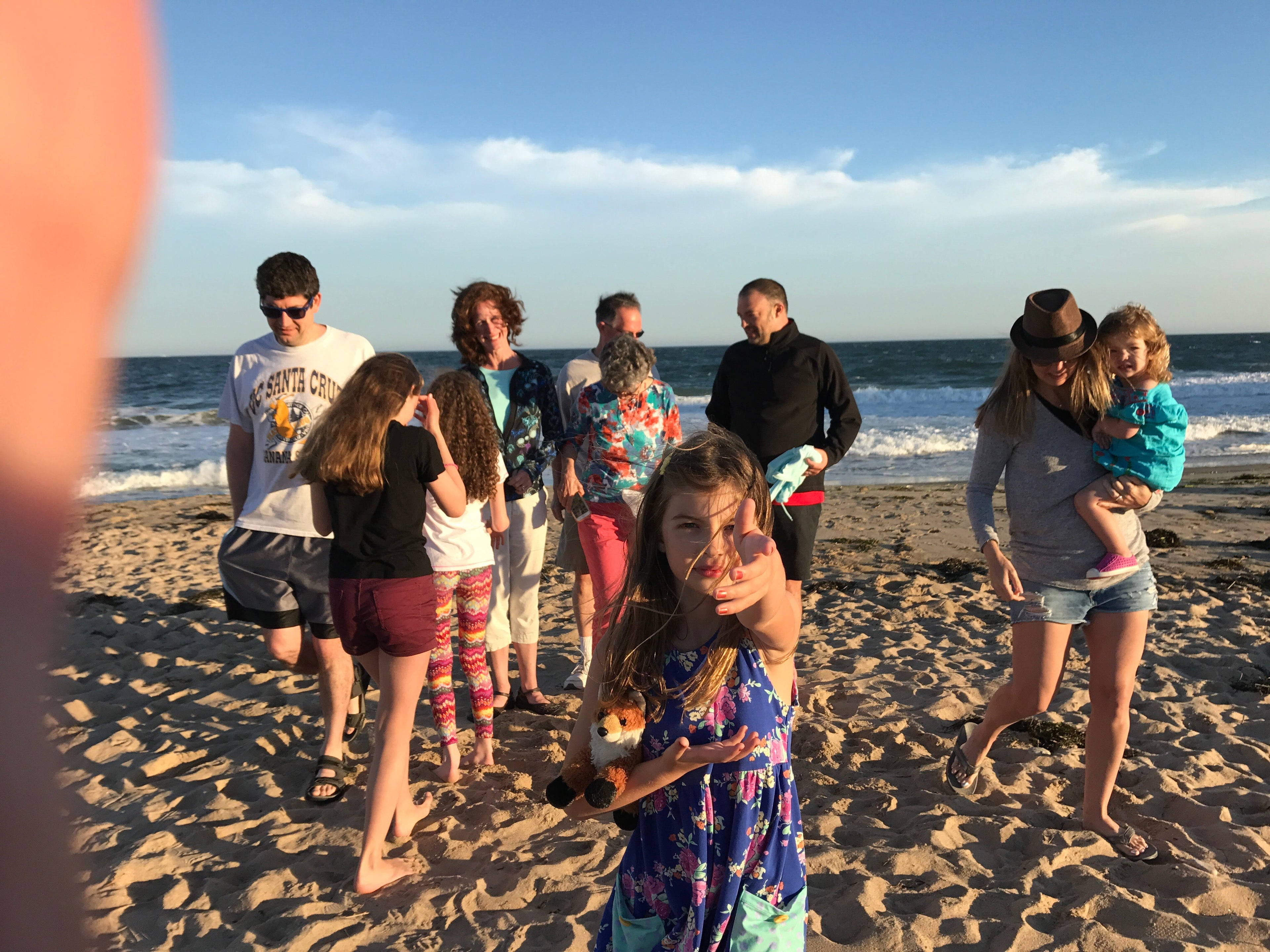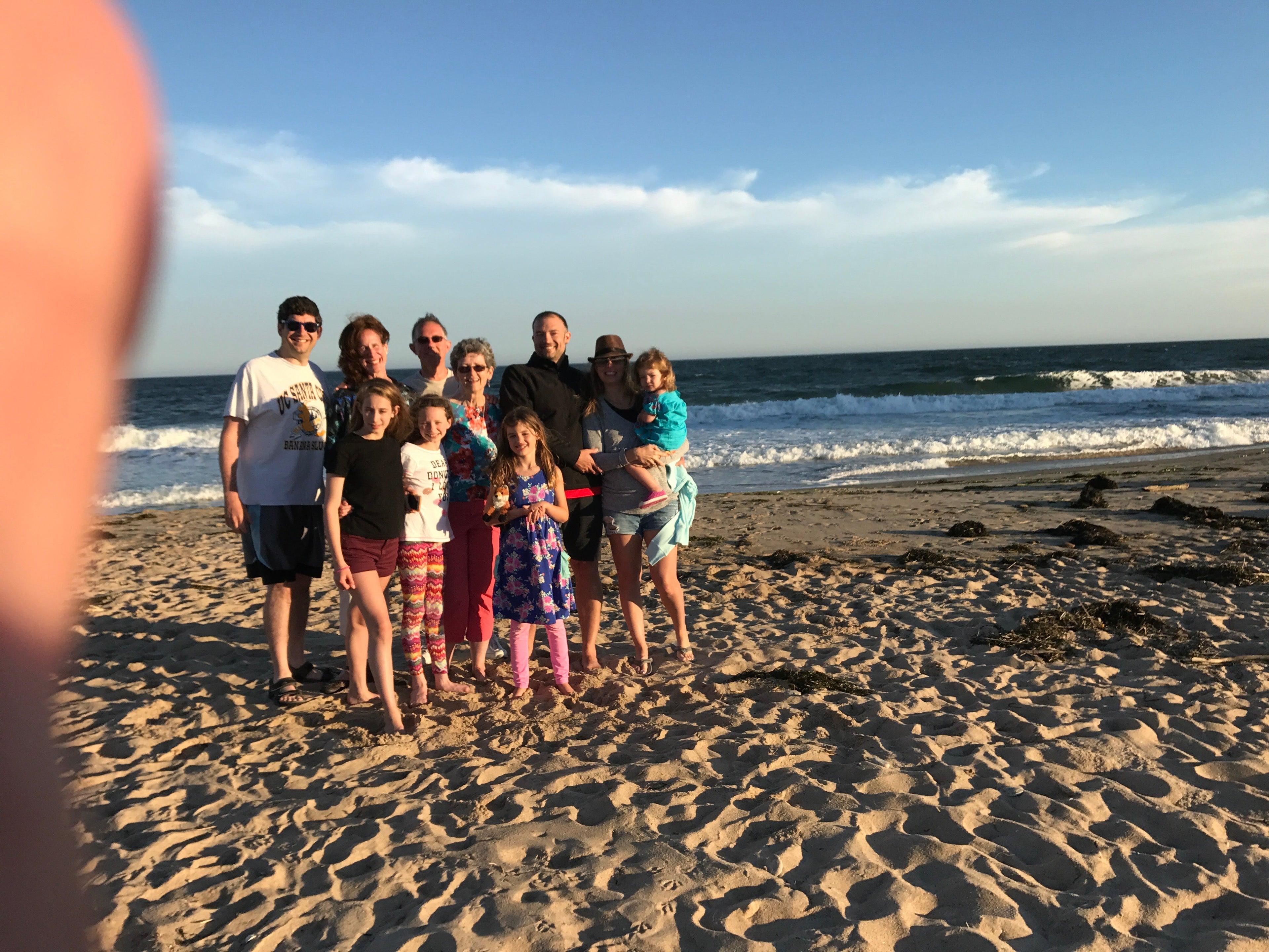 Now, you never knew how those 'kind stranger' photos were going to turn out, but you usually just hoped for the best and assumed the worst. I'm not a professional photographer by any stretch, but some people are really terrible at taking simple photos. I happen to be married to one such otherwise talented person. At least with iPhones and digital cameras, the good news is that you now know instantly whether you got something half-way decent or not. And so it was on our current family trip to Rhode Island that we packed up the 10 of us and headed to the beach around sunset to try and get at least one halfway decent photo with everyone in the shot. You can imagine how thrilled most folks are by this sort of post-dinner field trip.