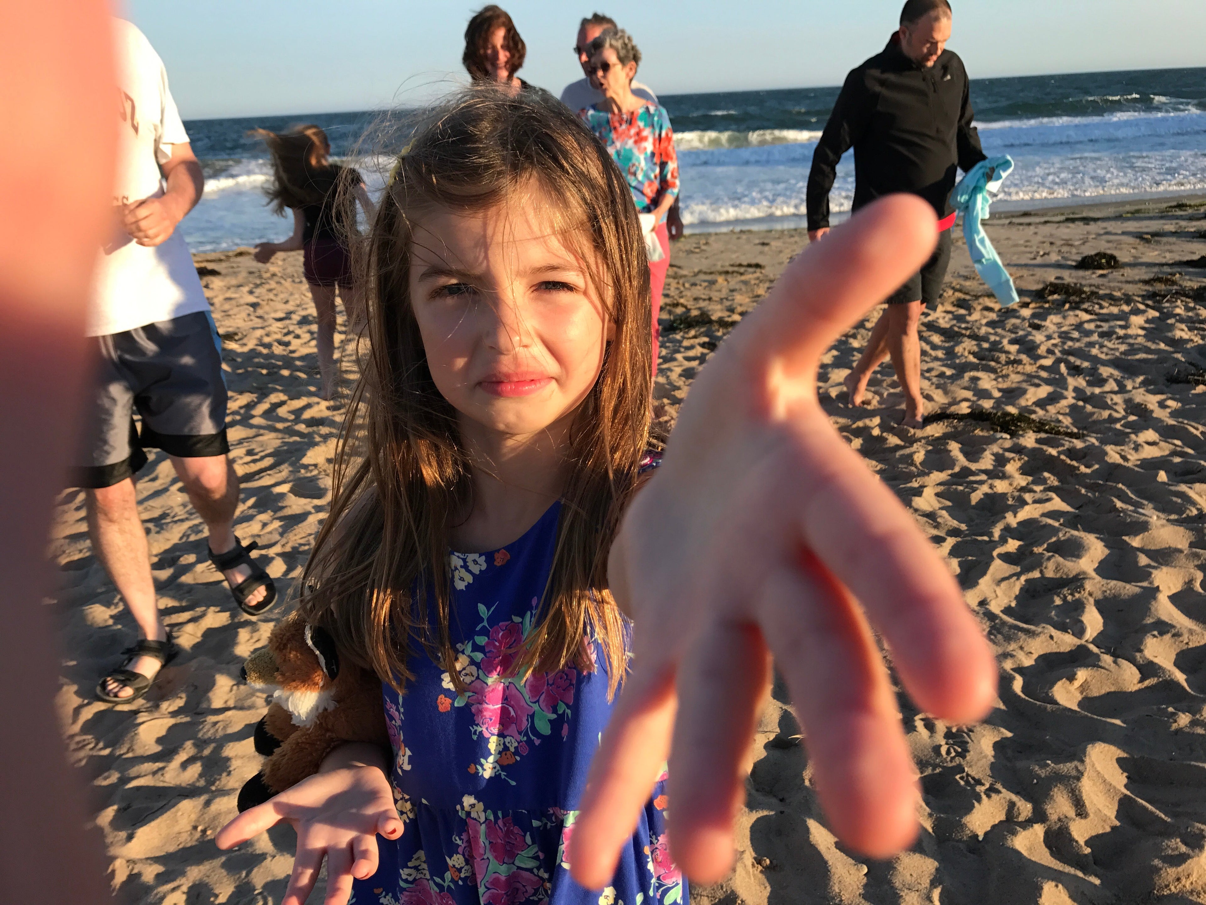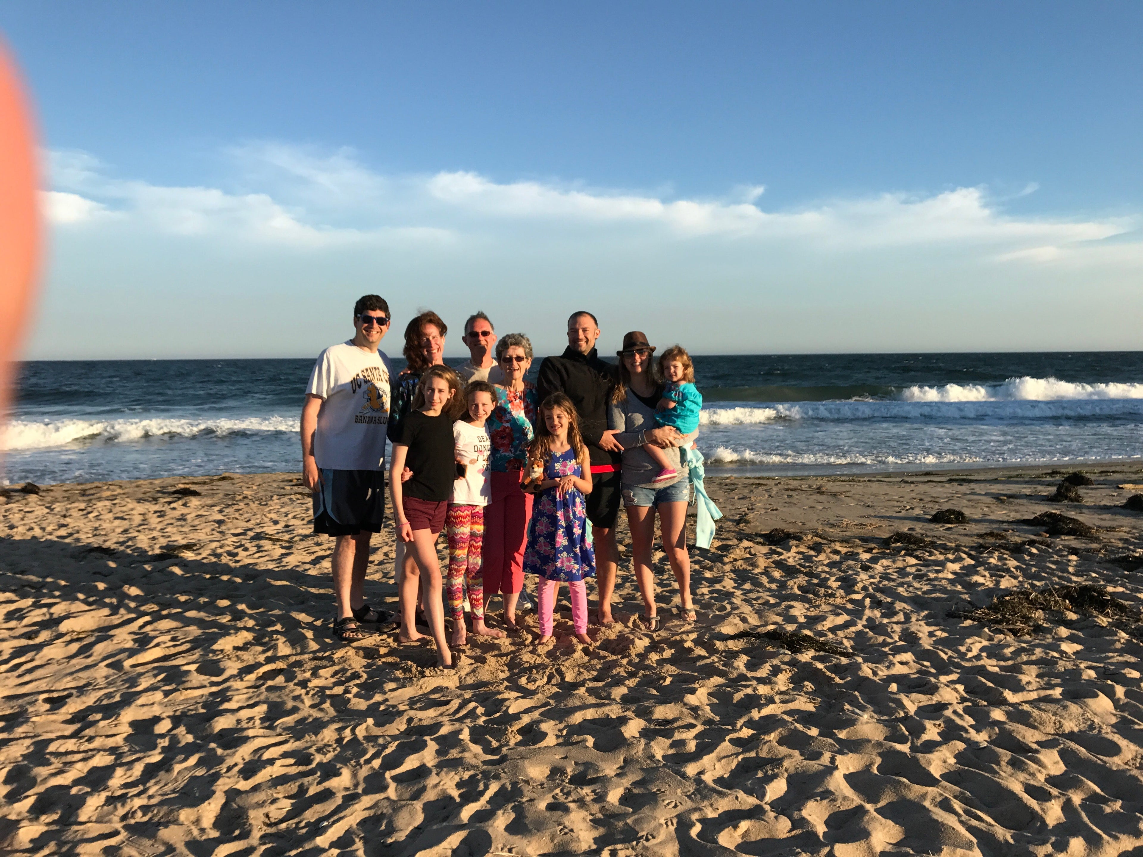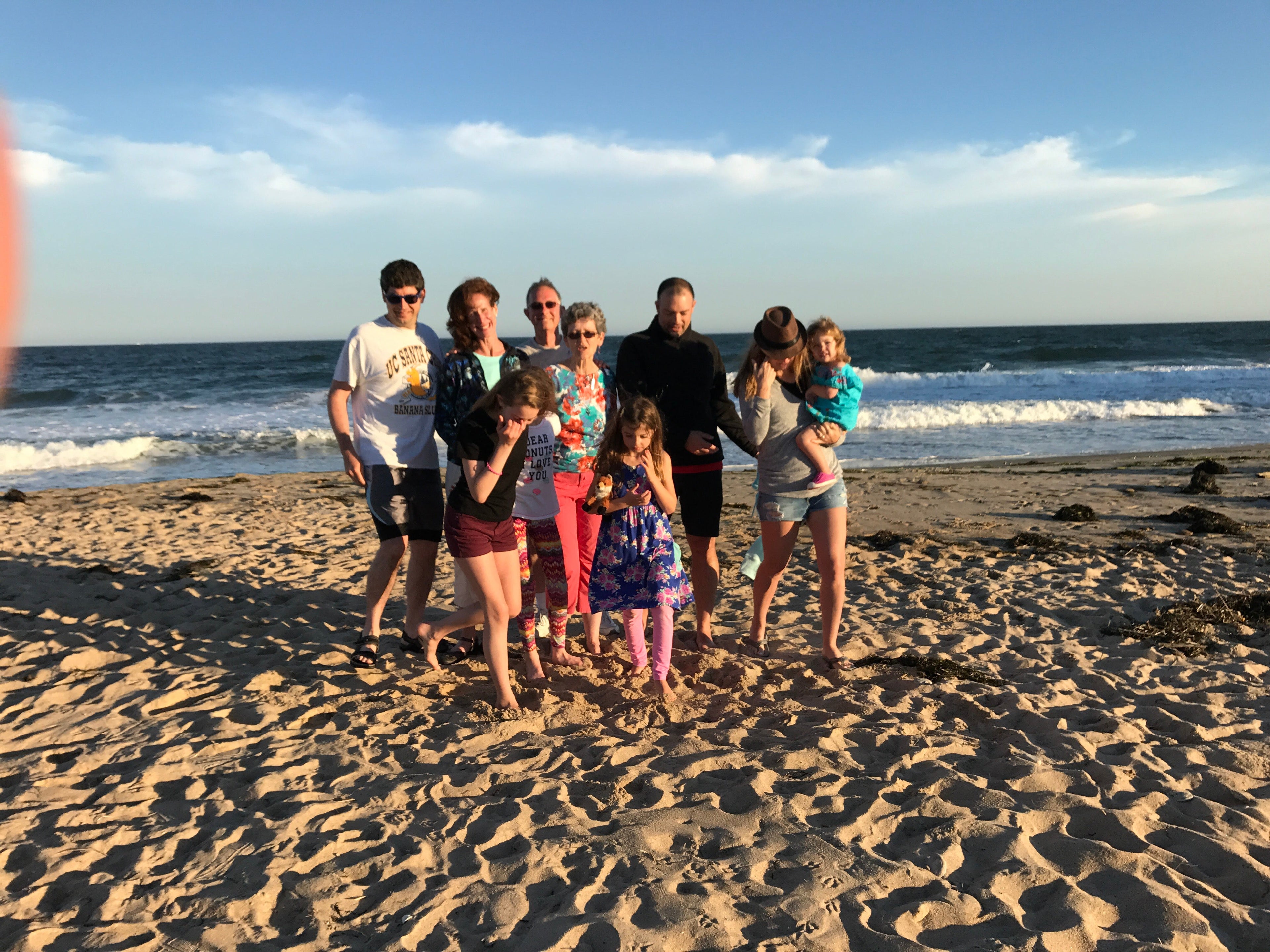 Now, you never knew how those 'kind stranger' photos were going to turn out, but you usually just hoped for the best and assumed the worst. I'm not a professional photographer by any stretch, but some people are really terrible at taking simple photos. I happen to be married to one such otherwise talented person. At least with iPhones and digital cameras, the good news is that you now know instantly whether you got something half-way decent or not. And so it was on our current family trip to Rhode Island that we packed up the 10 of us and headed to the beach around sunset to try and get at least one halfway decent photo with everyone in the shot. You can imagine how thrilled most folks are by this sort of post-dinner field trip.
