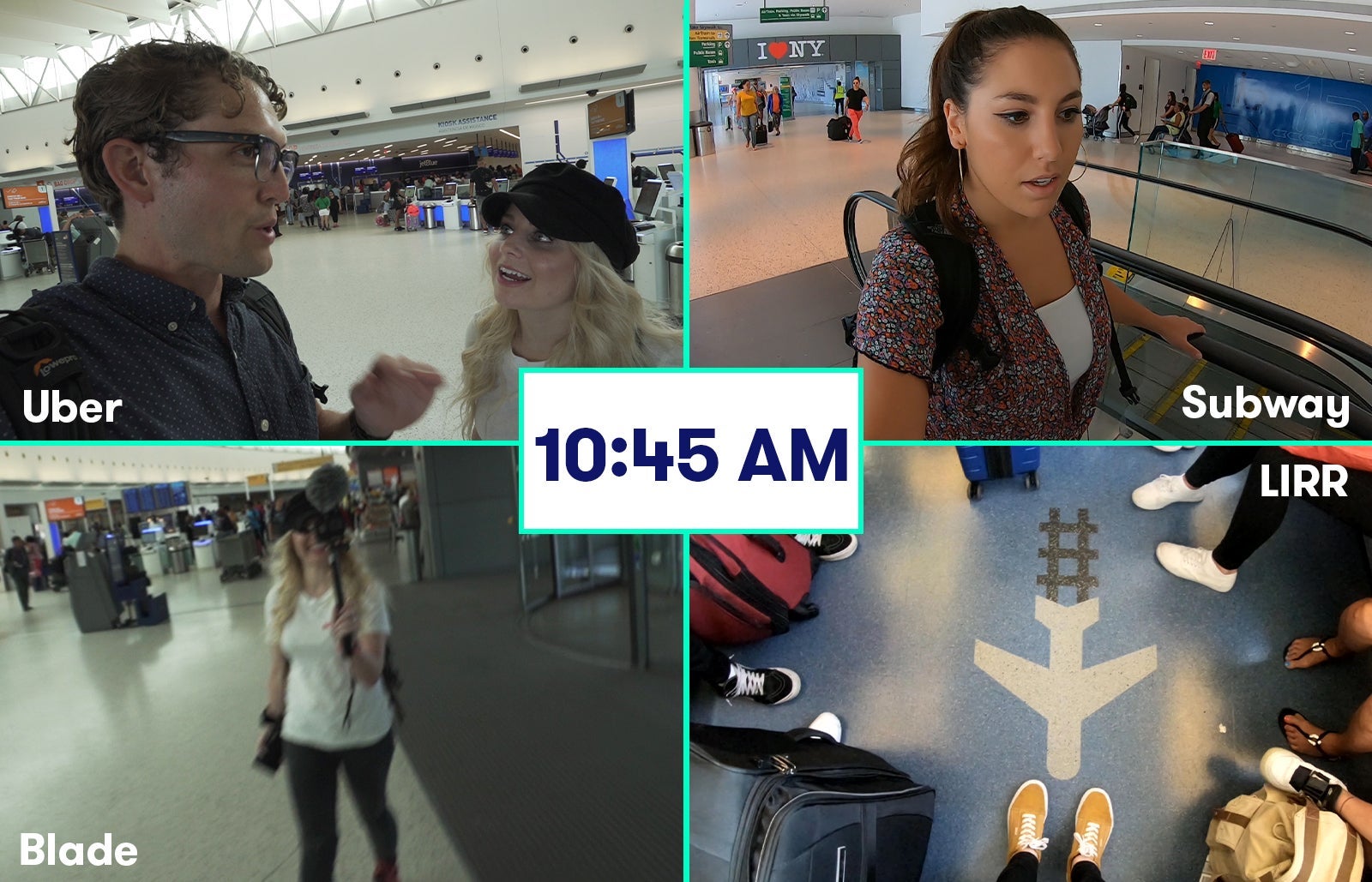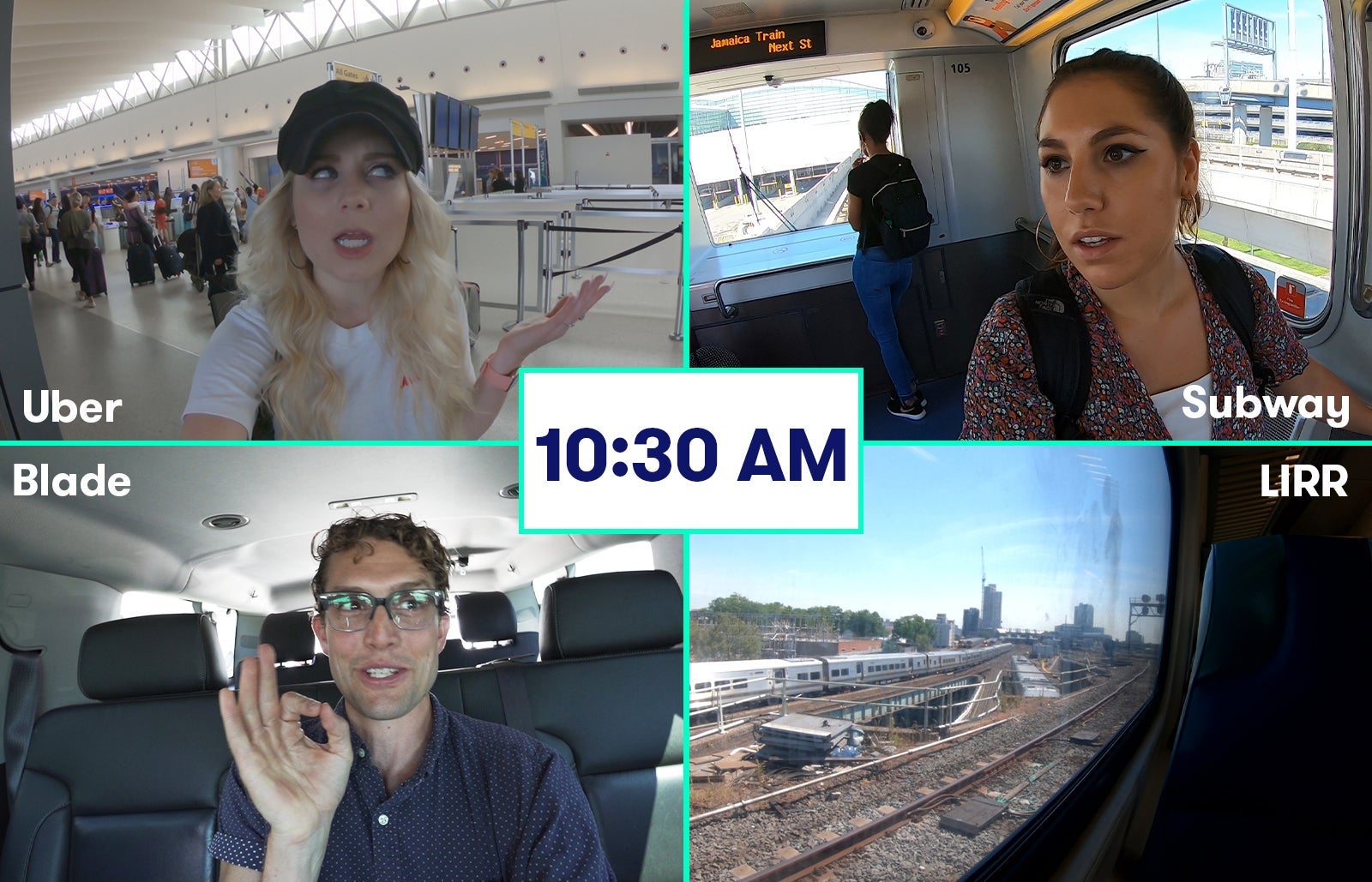 We wanted to test four transportation modes to the airport to see which one would be fastest and most economical. To help TPG readers decide about their next ride to JFK, we sent our video team — Jess, Sara, Ted and Nat — by Uber, Blade, Subway and the Long Island Railroad (LIRR).