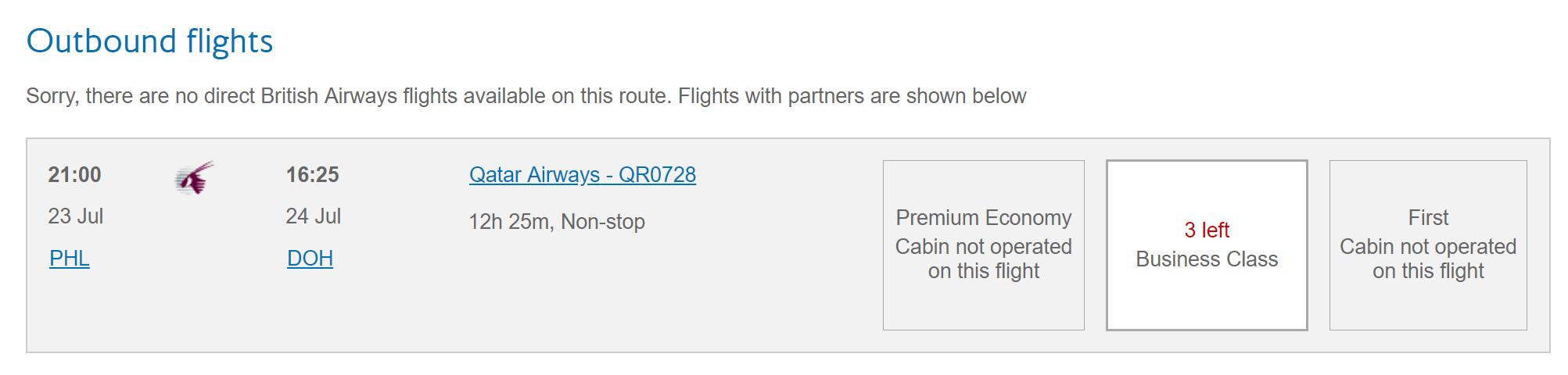 Even better, there's currently three business class saver award seats available on the flight from Philadelphia to Doha:
