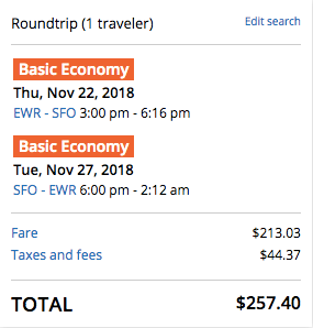 Another way to save money is flying on the actual holiday. By doing a quick Google Flight search, I found that travelers flying United from NYC (EWR) to San Francisco (SFO) could save $273 by flying on Thanksgiving Day instead of the Tuesday before, or they could save $115 by flying on the holiday instead of Wednesday.