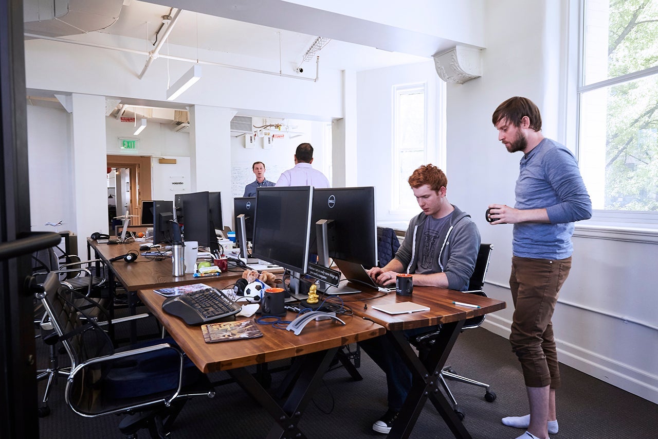 "When we were looking around for a place to move into, they showed us all these glass boxes," CEO Azim Barodawala said as he strolled back from the weekly team lunch at a neighborhood food hall. "We didn't want glass boxes. Here, we could be part of the community."
