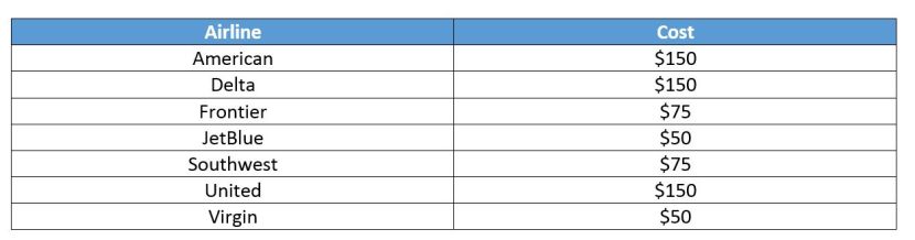 Flying with a bicycle can cost as little as $50 and as much as $200. Here's a nifty chart including the costs for major airlines: