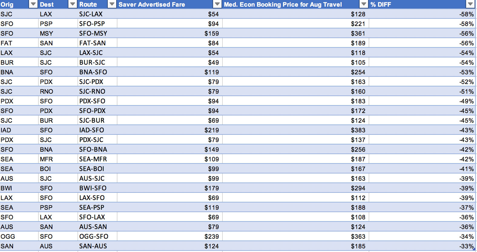 What's not up for debate, however, is that Southwest Airlines and Alaska Airlines did launch flash sales on Tuesday. Southwest fares on dozens of routes dropped below $100, and Alaska launched its summer sale, which will run from June 4 - 10 for travel in August. Here is a chart of some of the biggest savings on Alaska fares: