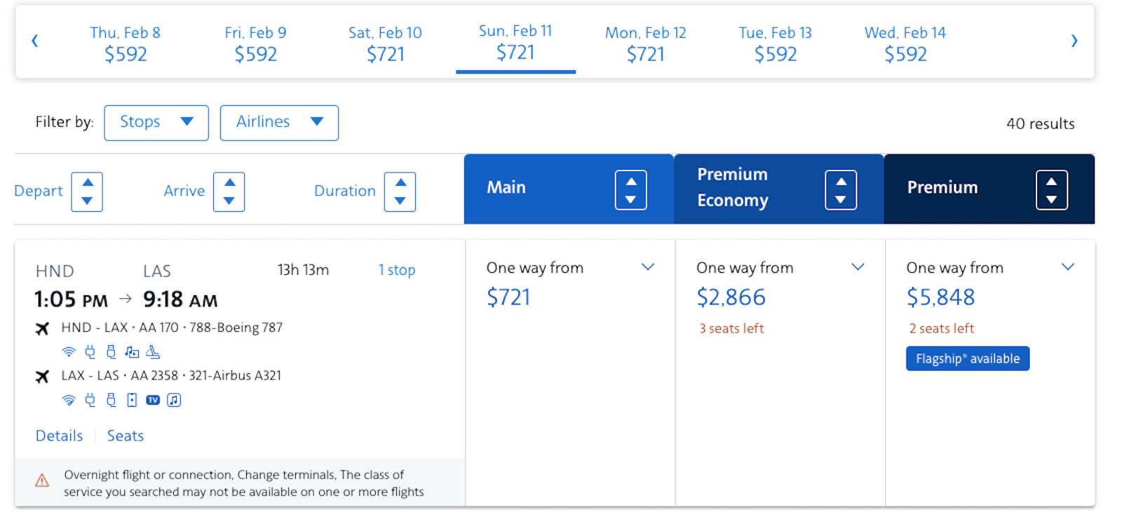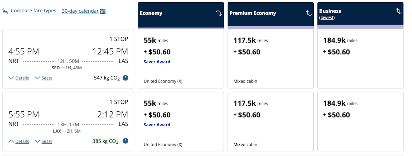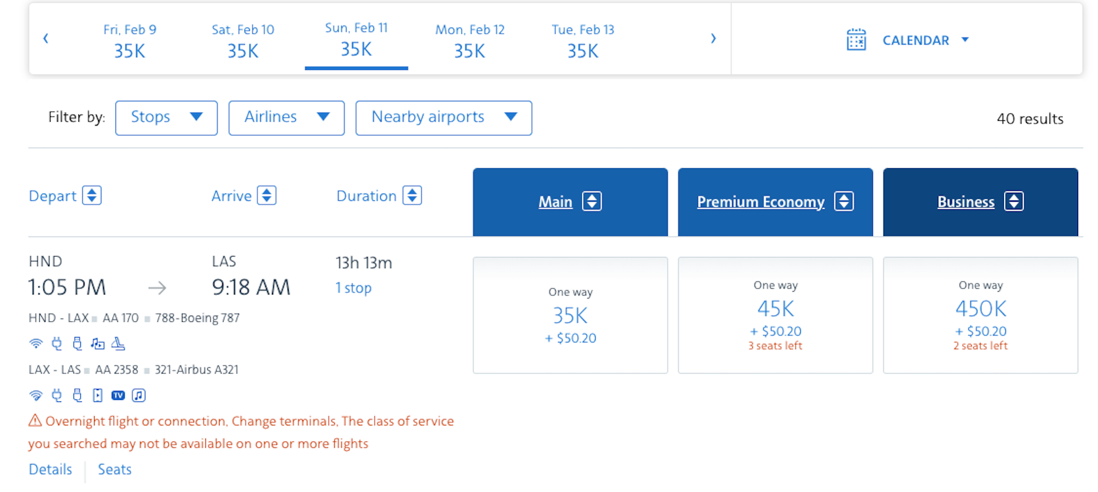 You can book that same Tokyo-to-Vegas itinerary on American for 35,000 AAdvantage miles, one-way in economy.