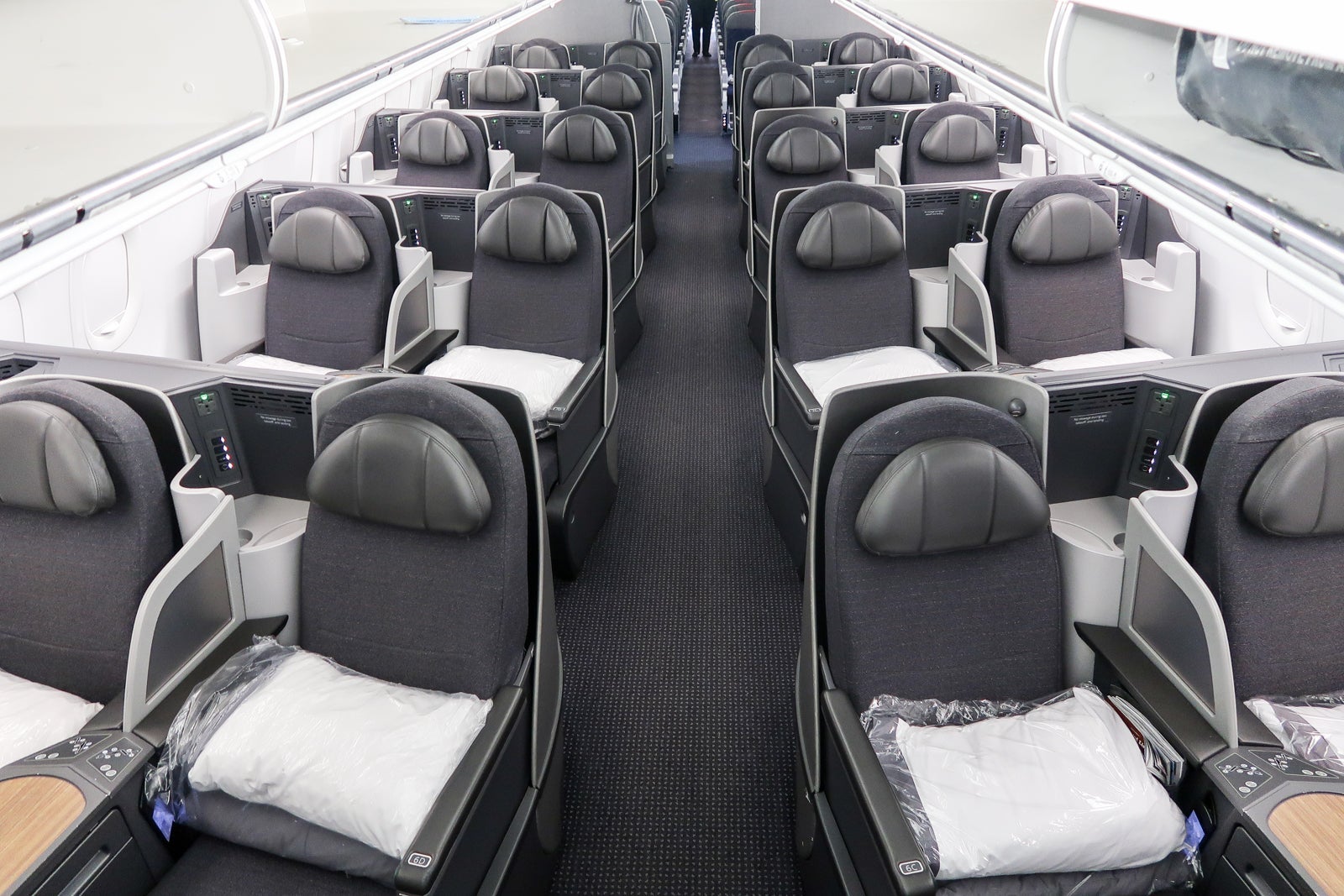 These transcontinental flights will also get you access to American's flagship lounges, which are some of the better ones operated by any American airline. If you want to fly in first class, which features 10 reverse herringbone seats (similar to the ones you'll find in most of American's international fleet) laid out in a 1-1 configuration, you may be able to swing that as well.