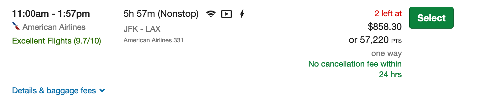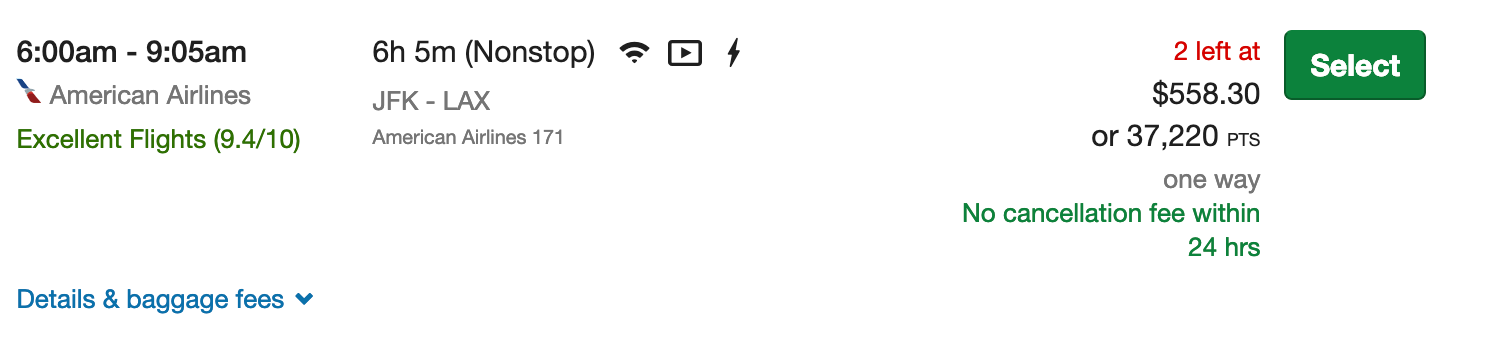 This gives you a redemption value of about 1.32 cents per point if you transfer your Chase Ultimate Rewards points to JetBlue, better than the 1.25 cents you'd get if you booked these flights directly through the Chase portal.