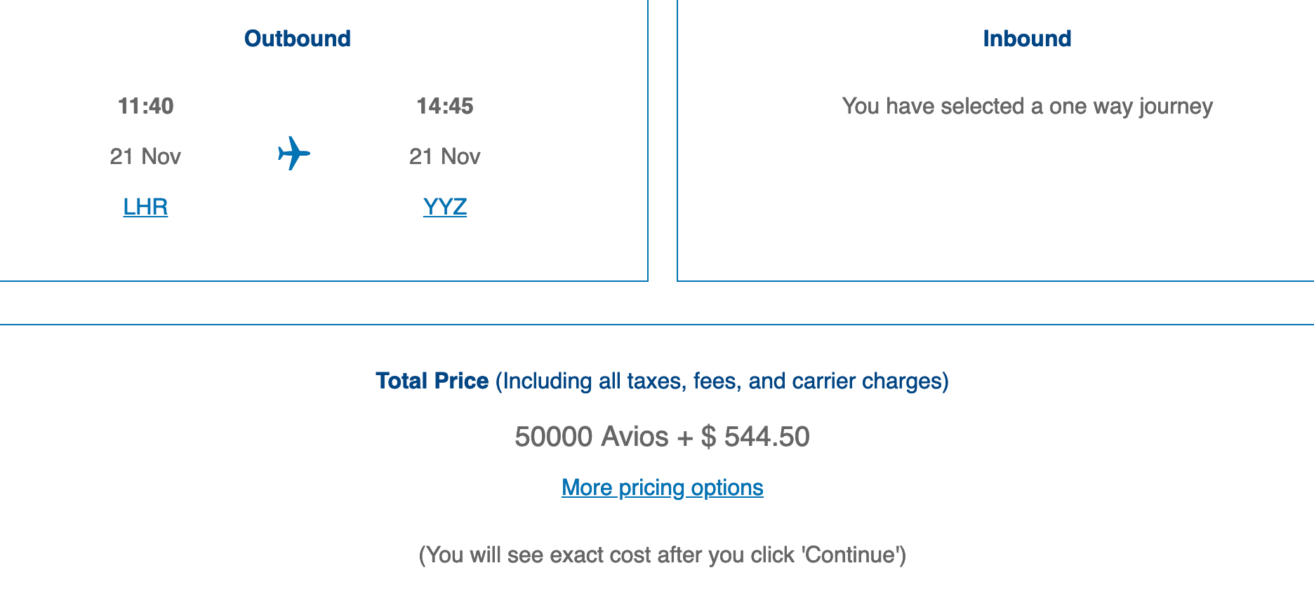 The new product will initially debut on British Airways' A350-1000 aircraft, the first of which it expects to take delivery of this July. The first long-haul routes will be from London (LHR) to Madrid (MAD), Dubai (DXB) and Toronto (YYZ). TPG's JT Genter did an excellent job compiling all of your options for booking this new product on points and miles, but one option jumps out immediately: flights from London to Toronto cost either 50,000 or 60,000 Avios each way in business class, depending on whether the flight is during peak or off-peak travel dates.