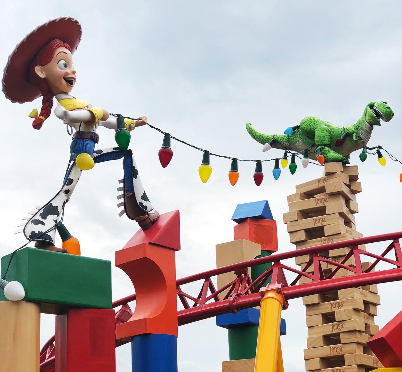 Use your Fast Pass for Slinky Dog Dash because it appears to be a favorite. You'll zoom past alphabet blocks and a lost bouncy ball and zip around cowgirl Jessie as she wrangles Rex (balanced on a precarious Jenga tower) with colorful Christmas lights. Even in the still sets, everything here is suffused with so much movement, it feels as if Toy Story Land could, quite reasonably, come to life at any minute.