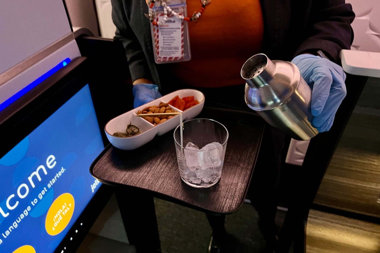 The airline's new partnership with Delicious Hospitality Group brings restaurant-quality, tapas-style meals to the business-class cabin — along with a wine list and cocktails that are shaken at your seat, a uniquely first-class touch.