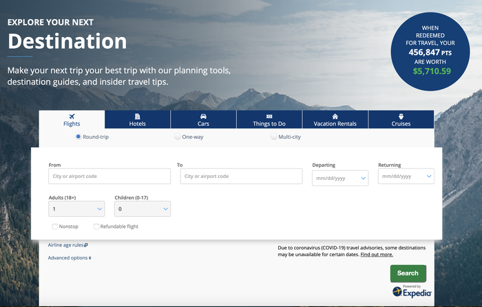 The Chase Ultimate Rewards Travel Portal is essentially an online travel agency similar to Priceline or Orbitz (it's actually powered by Expedia). When you log into this platform with your Chase credentials, you can book airfare, hotels, rental cars and more, either by paying with your credit card, redeeming Chase points, or with a mix of both. You can redeem your points for travel at a rate between 1 and 1.5 cents each, depending on which specific Chase credit cards you have (more on this below).